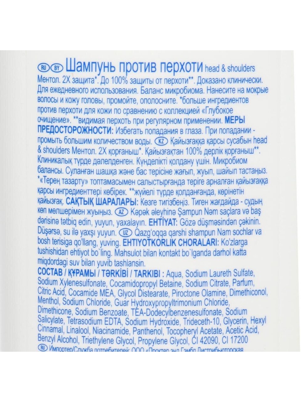 Использование шампуня Head & Shoulders с ментолом помогает поддерживать здоровье волос и кожи головы, предотвращая появление зуда и шелушения. Продукт обеспечивает ощущение свежести на весь день, делая волосы мягкими, послушными и ухоженными. Благодаря эффективной формуле, шампунь подходит для всей семьи и станет незаменимым средством ухода в домашней ванной комнате. Покупка этого шампуня – это выгодное вложение в красоту и здоровье волос, а также уверенность в безупречном внешнем виде каждый день. Ощути настоящее облегчение от перхоти и наслаждайся чистотой и свежестью волос с Head & Shoulders, Ментол, против перхоти, 360 мл.