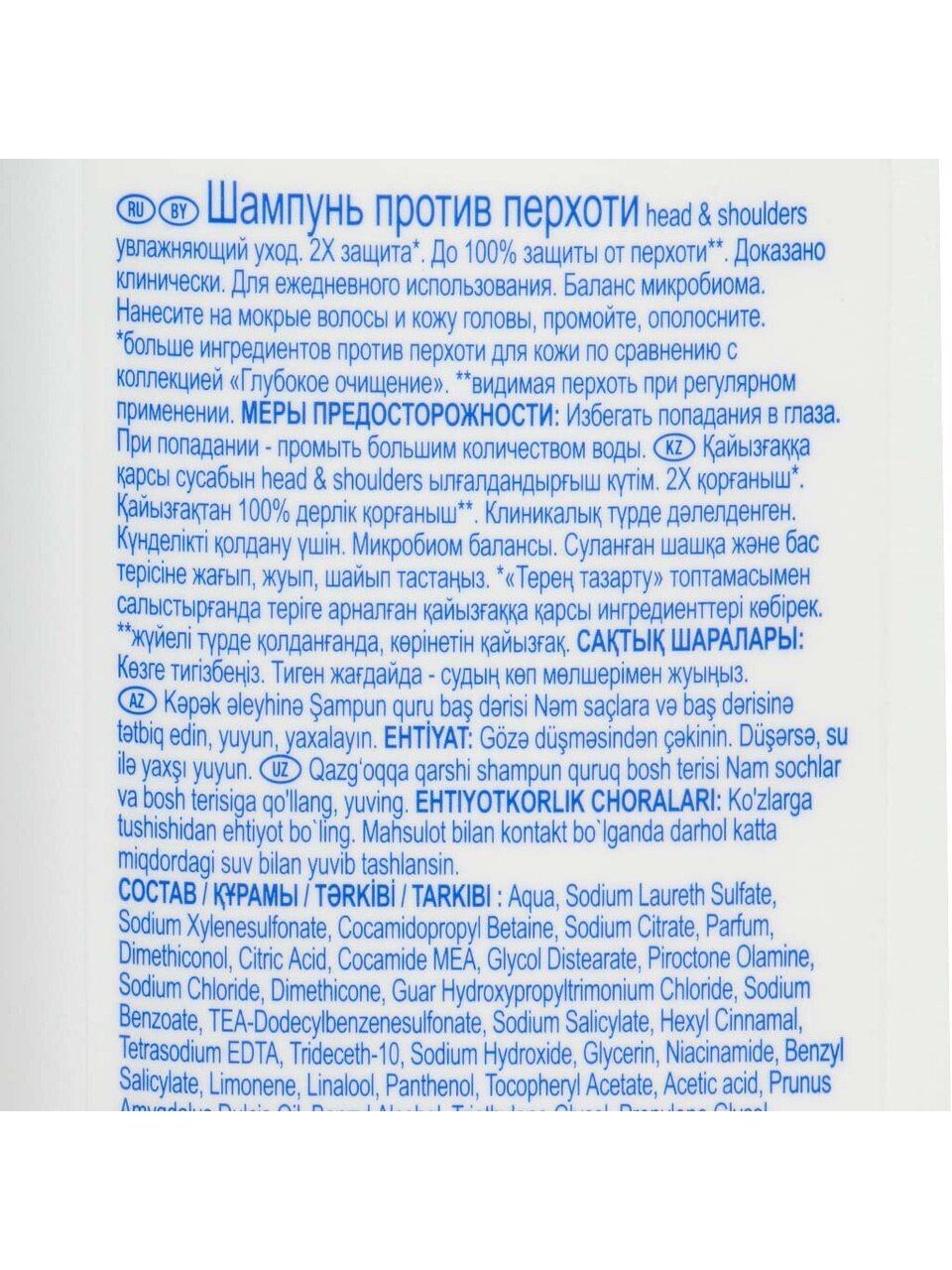 Шампунь Head & Shoulders, Увлажняющий уход, против перх, 360 мл — эффективное средство для ухода за волосами и кожей головы, созданное для борьбы с перхотью и поддержания чистоты и свежести. Формула шампуня специально разработана для интенсивного увлажнения, что помогает сохранить волосы мягкими, послушными и здоровыми. Надежная защита от перхоти и комфорт при каждом использовании делают этот продукт востребованным выбором среди покупателей, ищущих решения для ежедневного ухода за волосами.