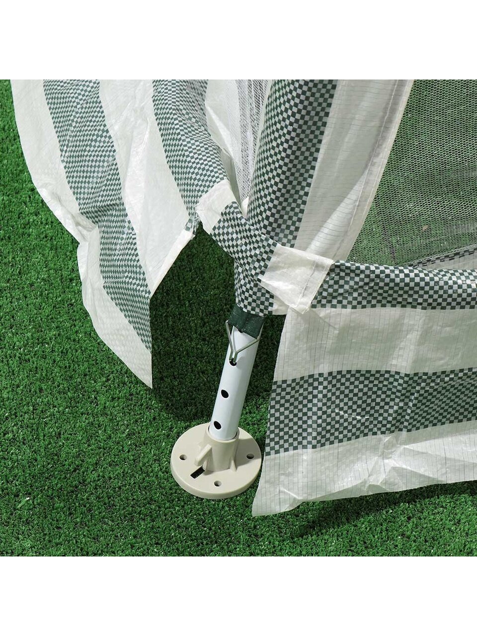- Комплектация: каркас (28 трубок, крестовина под купол, угловые крепления 4 шт), тент с москитной сеткой (сетка застегивается с помощью надежной молнии), веревки (4 шт) и колышки (8 шт) для крепления, заглушки на ножки.