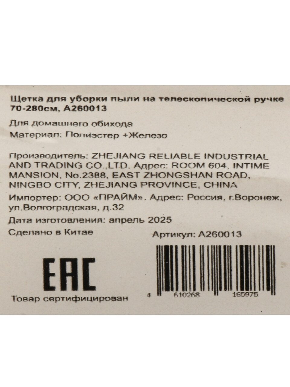 Щетка для уборки пыли на телескопической ручке 70-280 см A260013: легко достанет до труднодоступных мест, экономит время и силы при уборке в доме и на даче.