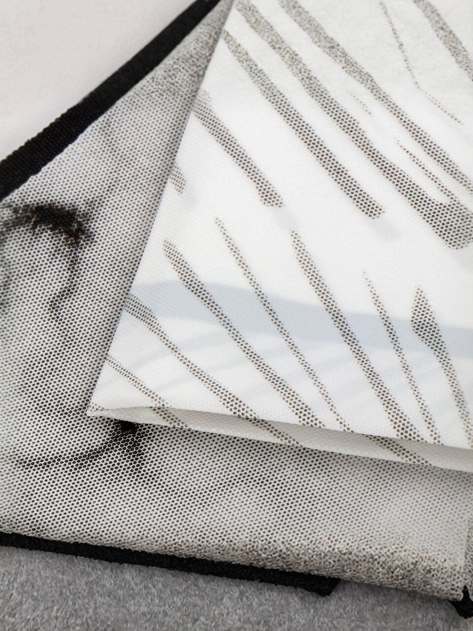 - С закреплением не возникнет проблем: по верхнему уплотненному краю полотна имеются отверстия для колец;