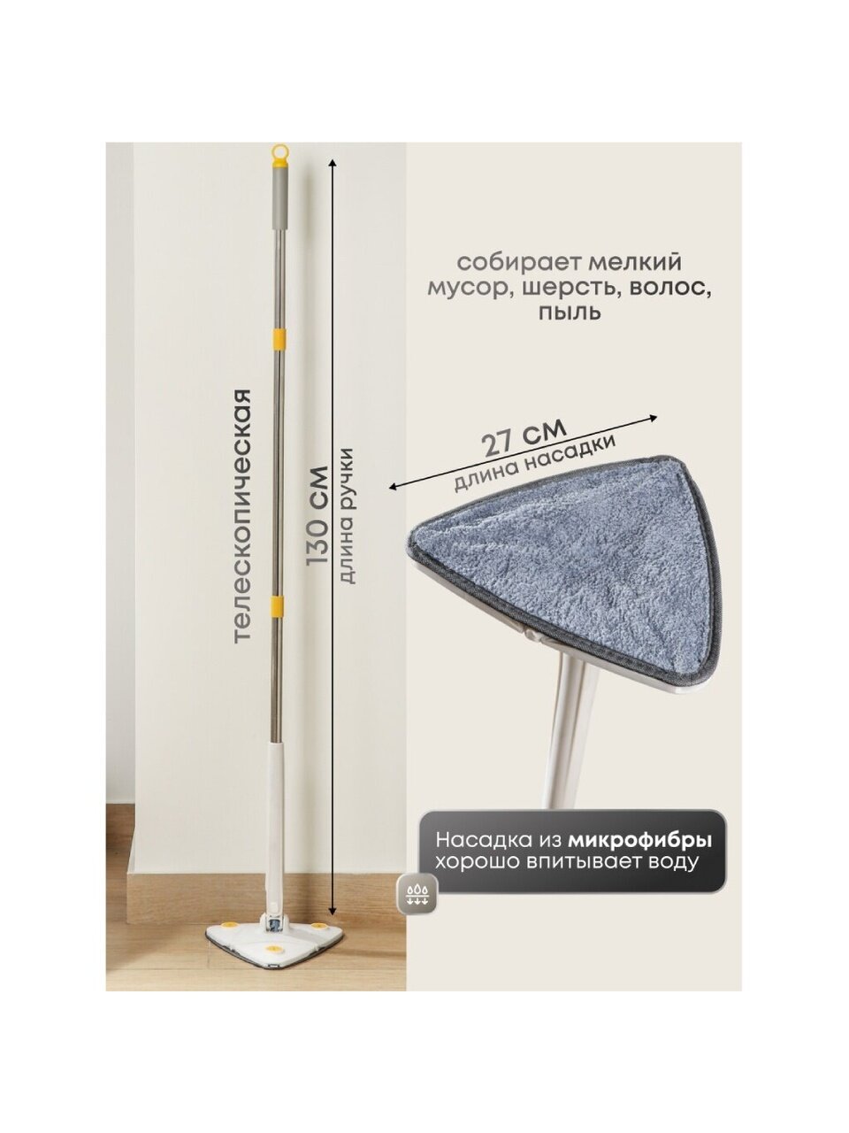 Швабра оснащена специальной насадкой, которая быстро и эффективно удаляет загрязнения с поверхности, что экономит время на уборку. А благодаря своей конструкции швабра легко складывается и раскладывается, что позволяет экономить место при хранении. Данная швабра это отличный выбор для тех, кто ценит качество, удобство и экономию времени.