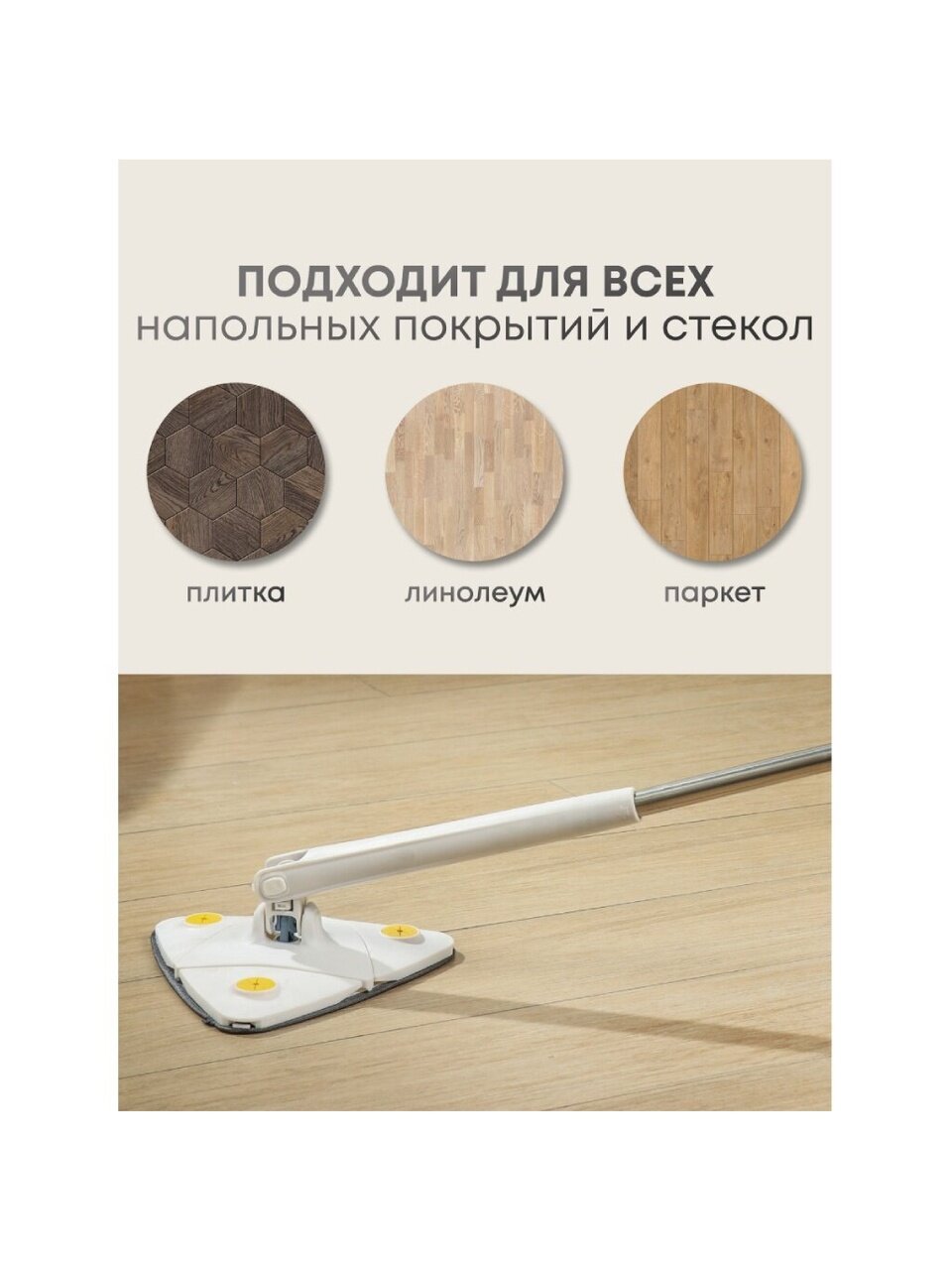 - Универсальность - швабра подходит для мытья любых поверхностей: ламината, плитки, паркета, линолеума.
