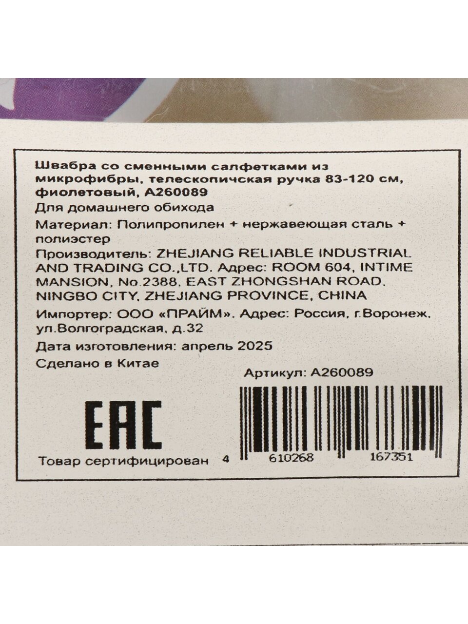 Вы можете приобрести «Швабра со сменными салфетками микрофибра, 120х35х12 см, телескопическая ручка, фиолетовая, A260089» и другие товары в нашем интернет-магазине в Брянске по низким ценам и с бесплатным самовывозом.