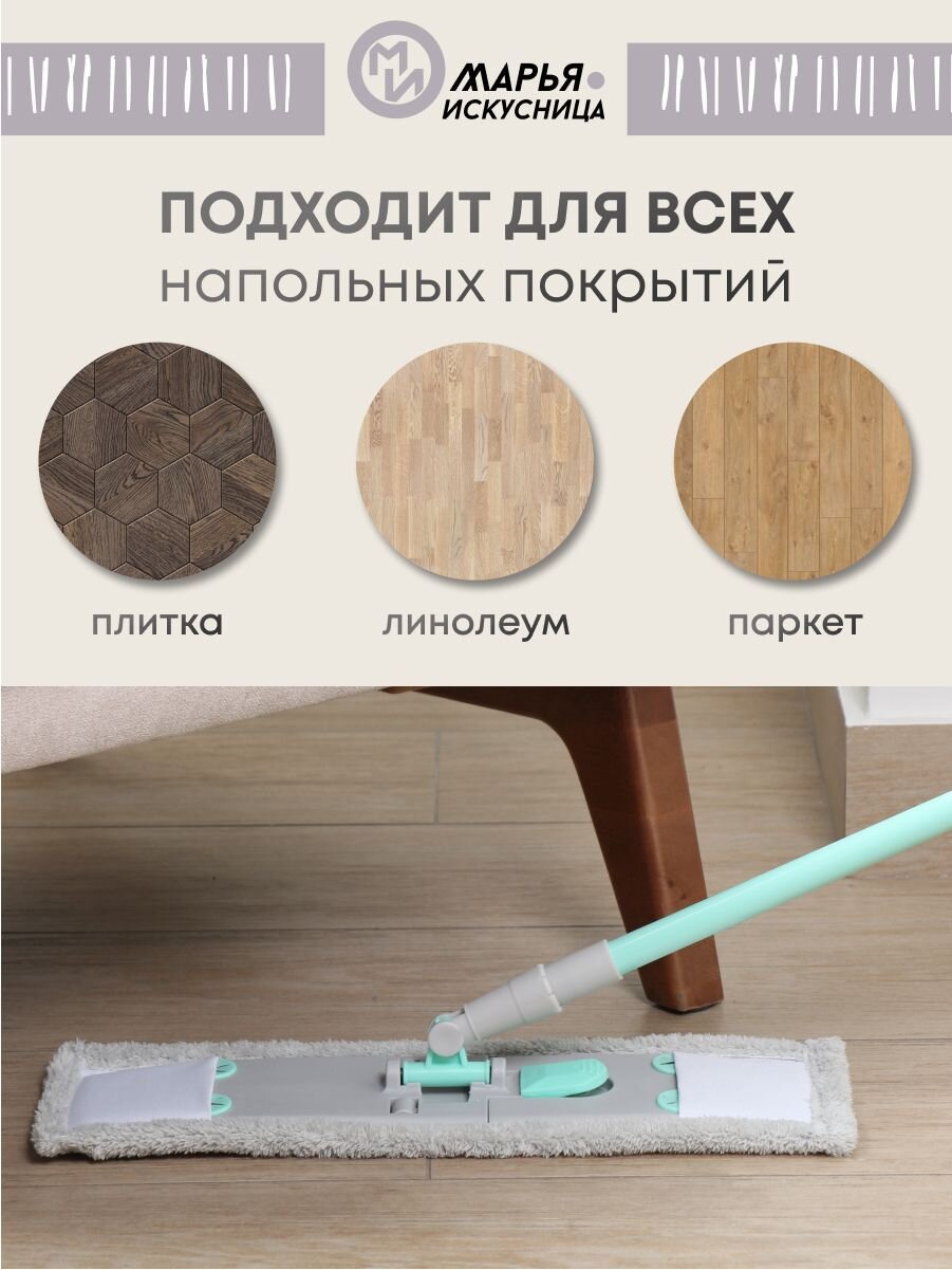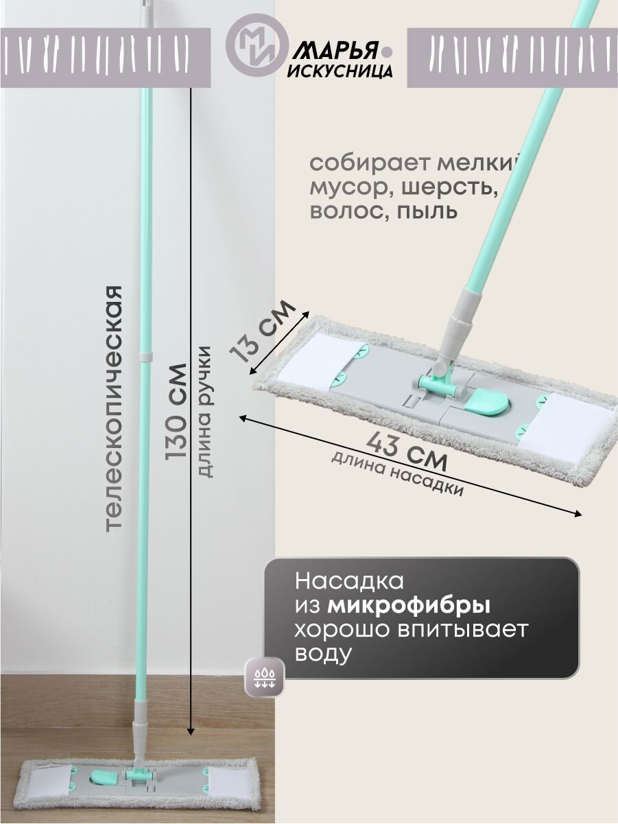 Швабра плоская с микрофиброй 130 см Марья Искусница: быстрое и деликатное очищение пола и стен без разводов и усилий — идеальный выбор для дома и дачи