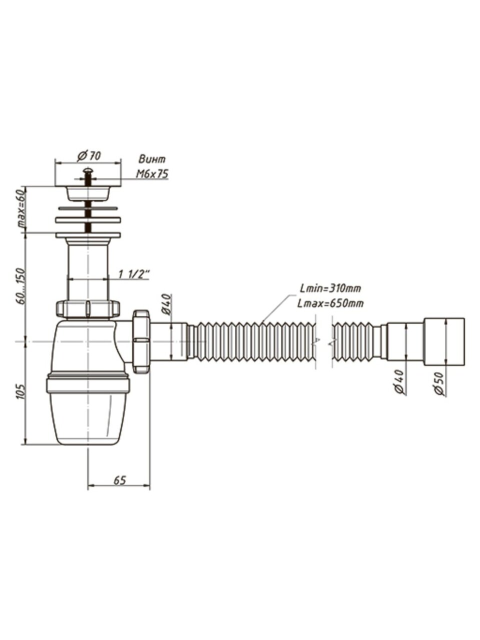 Бутылочный сифон выглядит как бутылка с горизонтальным ответвлением. Для подключения этой конструкции необходимо немного свободного пространства. Вода, которая находится в колбе, предупреждает проникновение канализационных запахов в помещение.