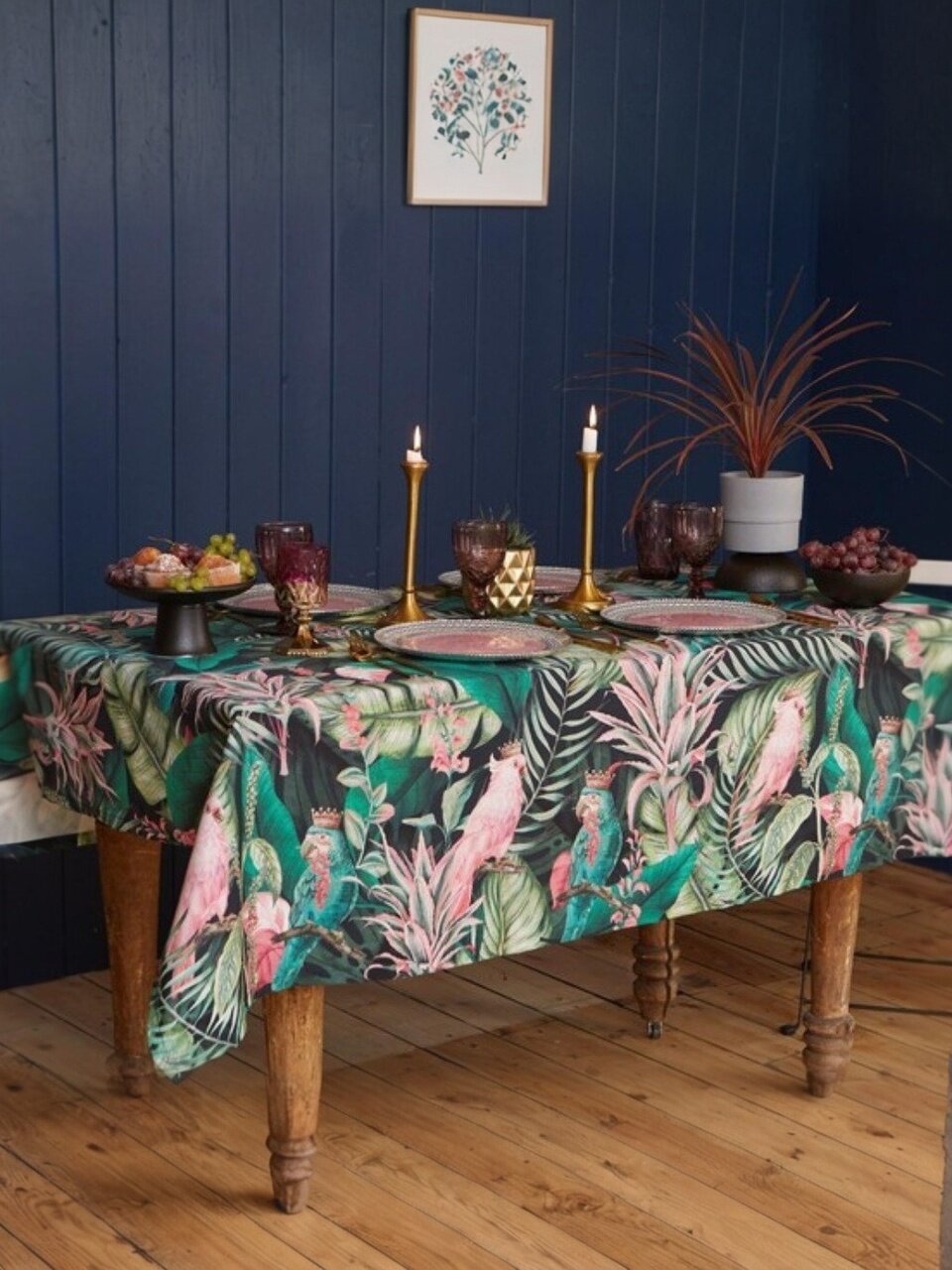 Ткань экологичная, износостойкая, не линяет и не выгорает. Модный цвет скатерти дополнит декор интерьера кухни, украсит обеденный стол, создаст благоприятную атмосферу и уголок уюта на кухне или в столовой.