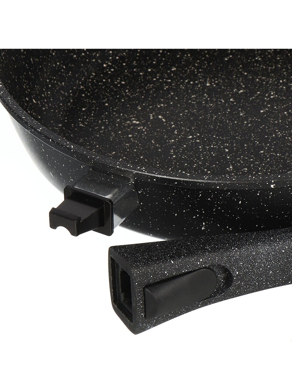 Сковорода Горница Гранит Induction 24 см — это современное решение для тех, кто ищет универсальную посуду с антипригарным покрытием для индукционных плит, газовых, электрических и стеклокерамических поверхностей. Благодаря литому алюминию и толщине дна 6 мм, тепло распределяется равномерно, что важно при жарке мяса, рыбы, оладий или омлета. Съемная ручка позволяет использовать сковороду не только на плите, но и в духовке — удобно для запекания и экономии места при хранении.