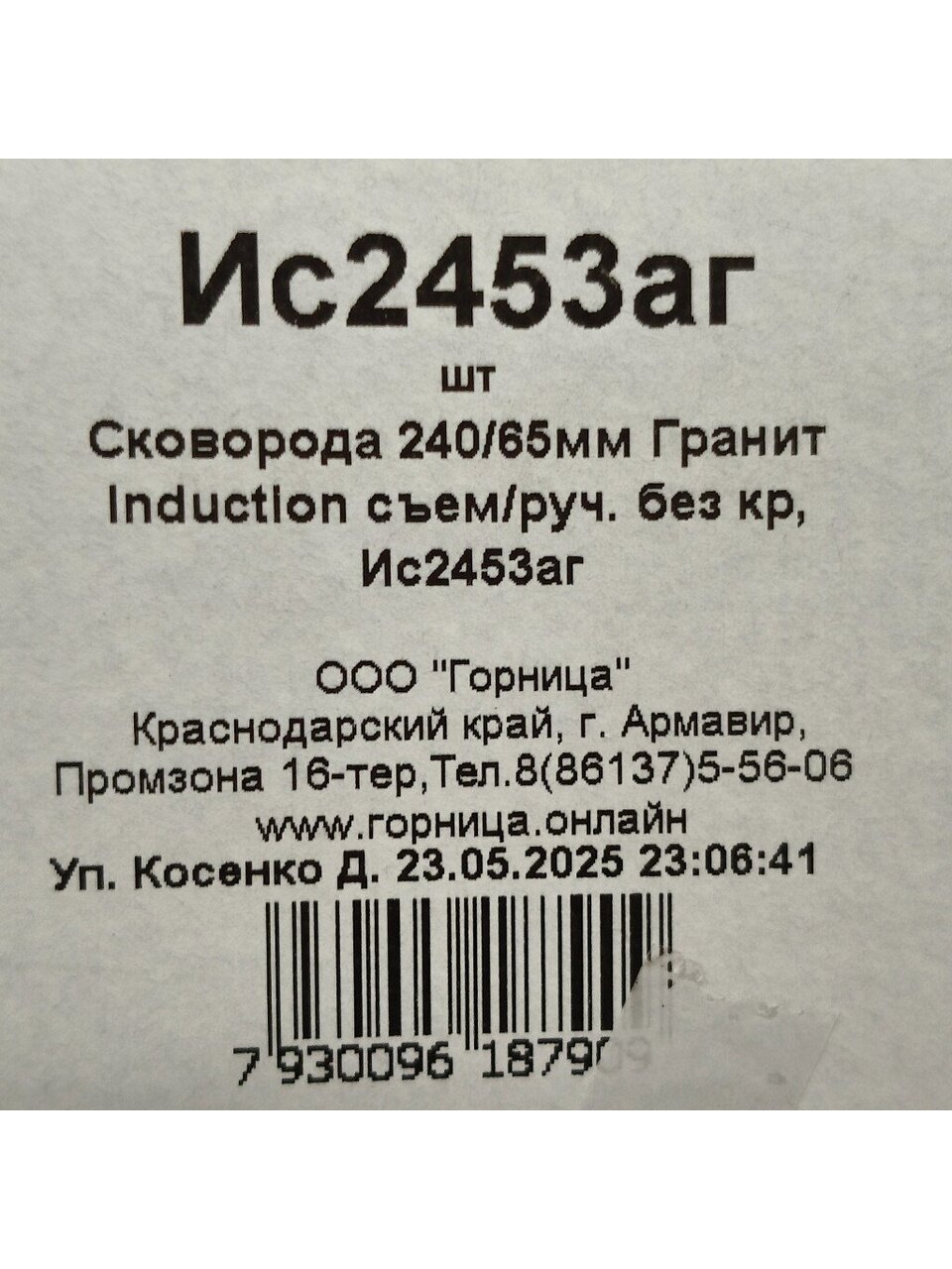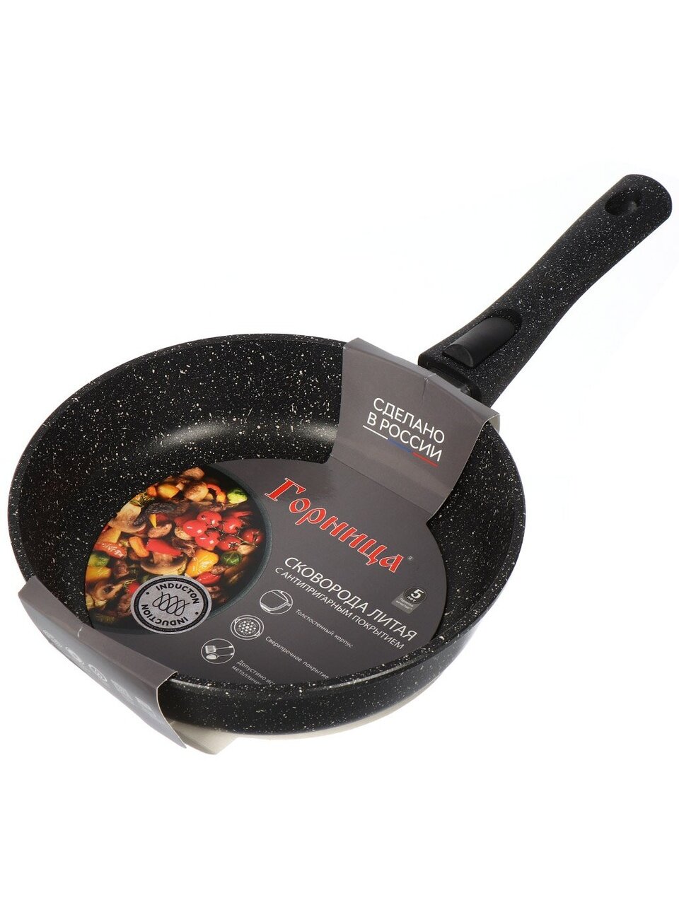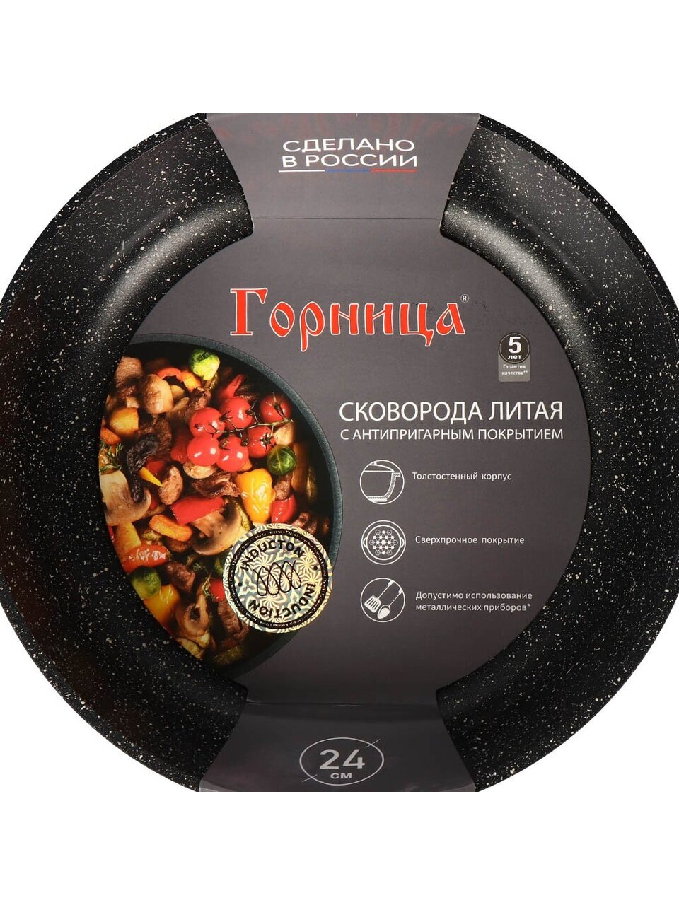 Сковорода Горница Гранит Induction 24 см — литой алюминий, гранитное антипригарное покрытие, съемная ручка, подходит для индукции и духовки. Гарантия 5 лет.