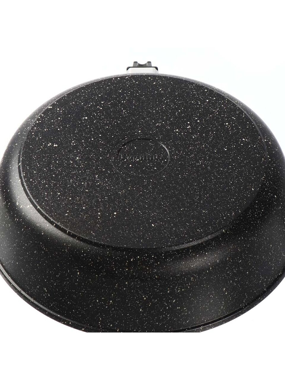 - Оптимальный размер 24 см, литой алюминий 6 мм дно, 4 мм стенки — долговечность, равномерный нагрев, вес всего 1 кг