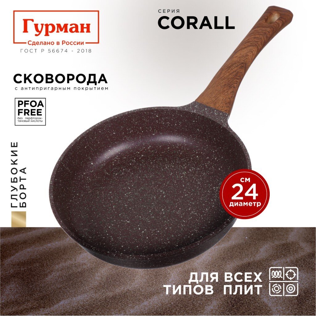 Сковорода из литого алюминия 24 см Гурман Coral: антипригарное гранитное покрытие для индукции, долговечность 3 года, оптимальный выбор для дома и дачи