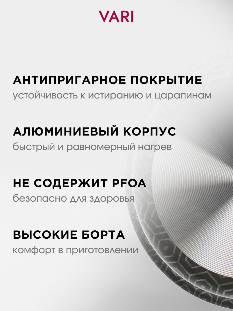 - Тефлоновое антипригарное покрытие Vari — готовьте без пригорания даже на минимальном масле
