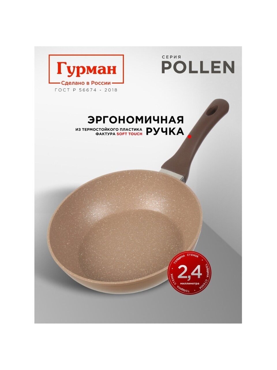 Если вы ищете, какую сковороду выбрать для индукционной плиты или как выбрать сковороду для жарки без масла, обратите внимание на модель Гурман Pollen. Гранитное антипригарное покрытие обеспечивает легкое отделение пищи, а усиленное дно (3 мм) гарантирует равномерное распределение тепла. Алюминиевая сковорода диаметром 22 см — универсальный вариант для семьи, идеально подходит для приготовления рыбы, курицы и мяса без пригорания.