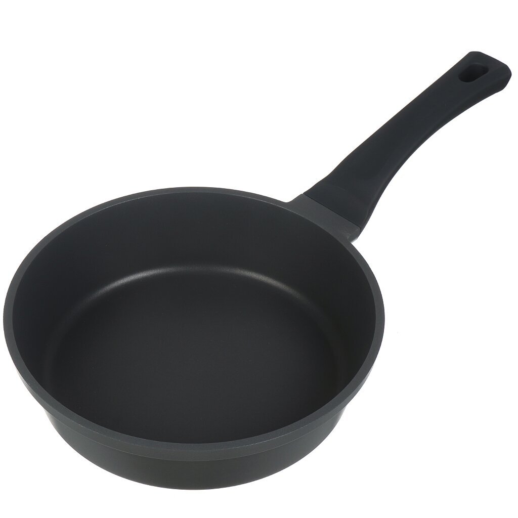 Диаметр 24 см, глубина борта 60 мм, толщина стенок 3 мм, прочный алюминий, эргономичная пластиковая ручка, универсальная форма без крышки.