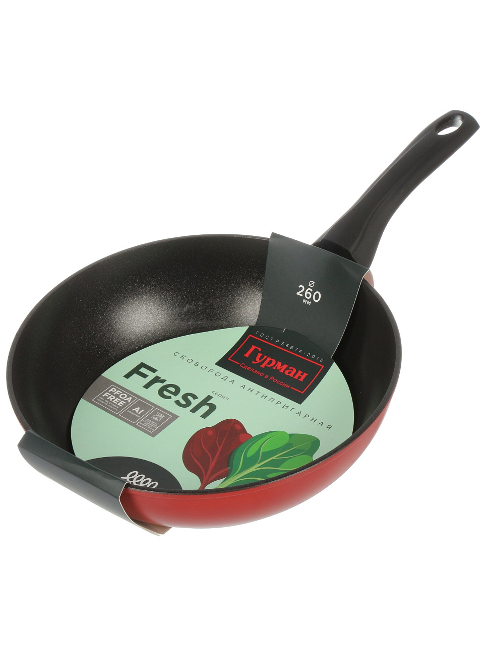 Сковорода литая алюминиевая 26 см Гурман Fresh red: антипригарное покрытие, подходит для индукции, идеальный выбор для кухни и дачи — готовьте легко и быстро.