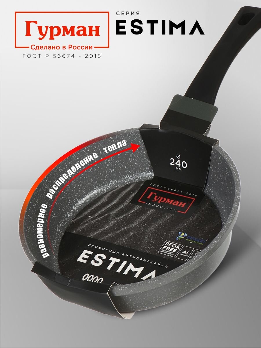 Закажите сковороду Гурман Estima 24 см по выгодной цене — получите универсальный инструмент для здорового и вкусного питания с доставкой и официальной гарантией.