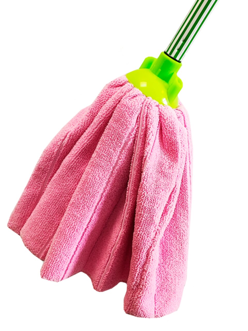 - Круглая форма насадки (диаметр 38 см), подходит для большинства швабр с креплением «юбка».