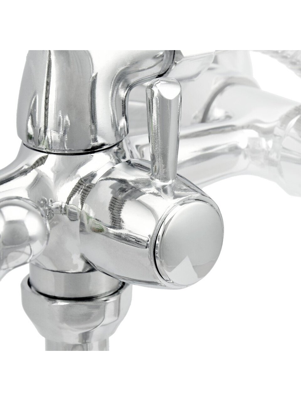 Смеситель оснащён двухвентильным механизмом с керамической кран-буксой — это обеспечивает точную регулировку температуры и напора воды, а также увеличивает срок службы.