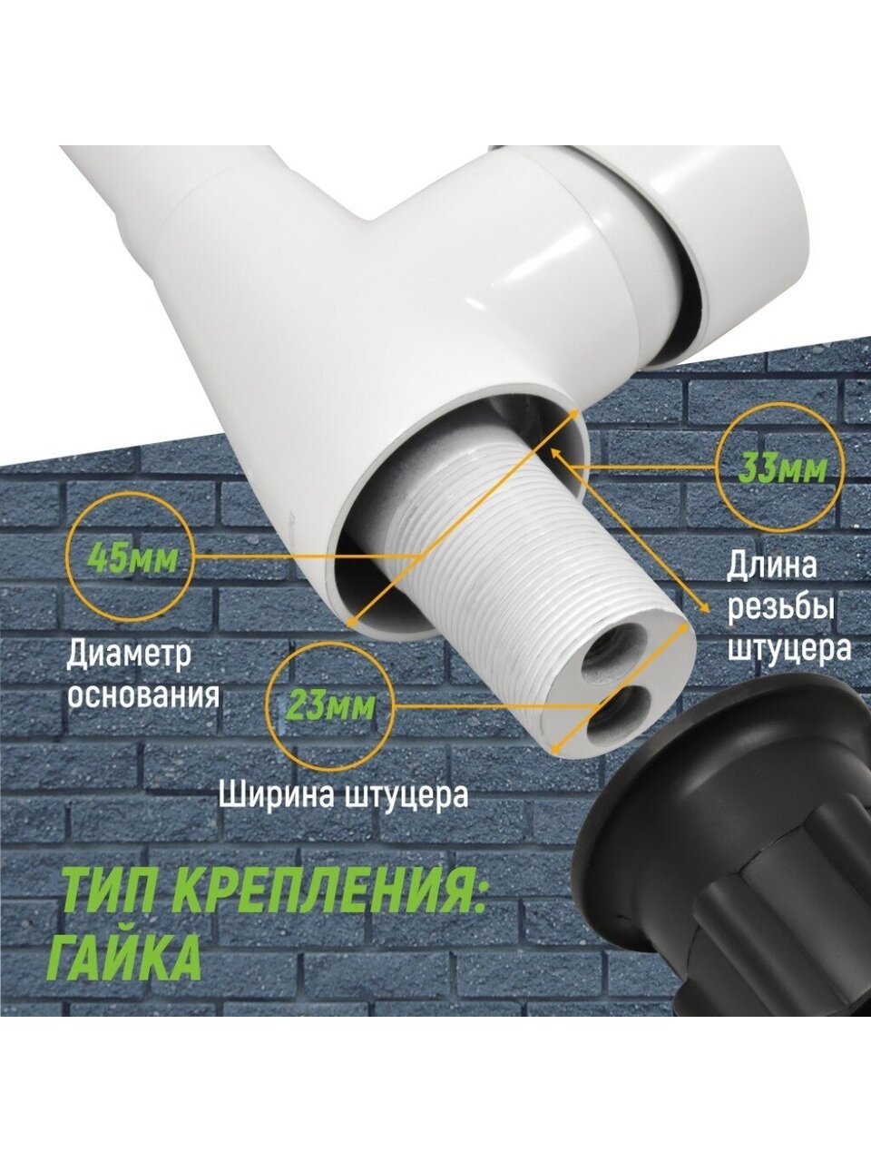 - Крепление: гайка.