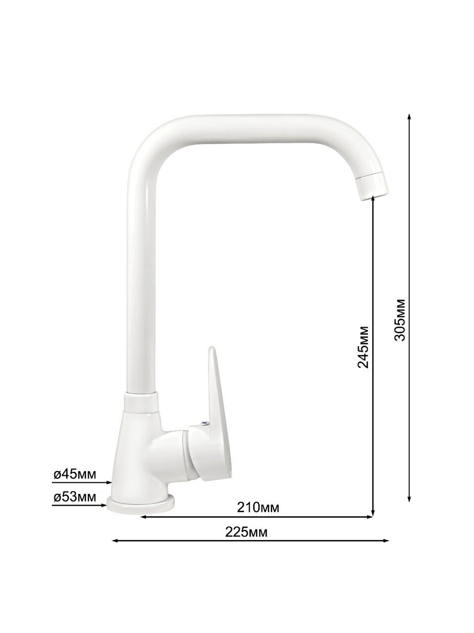 - Длина излива: 210 мм.