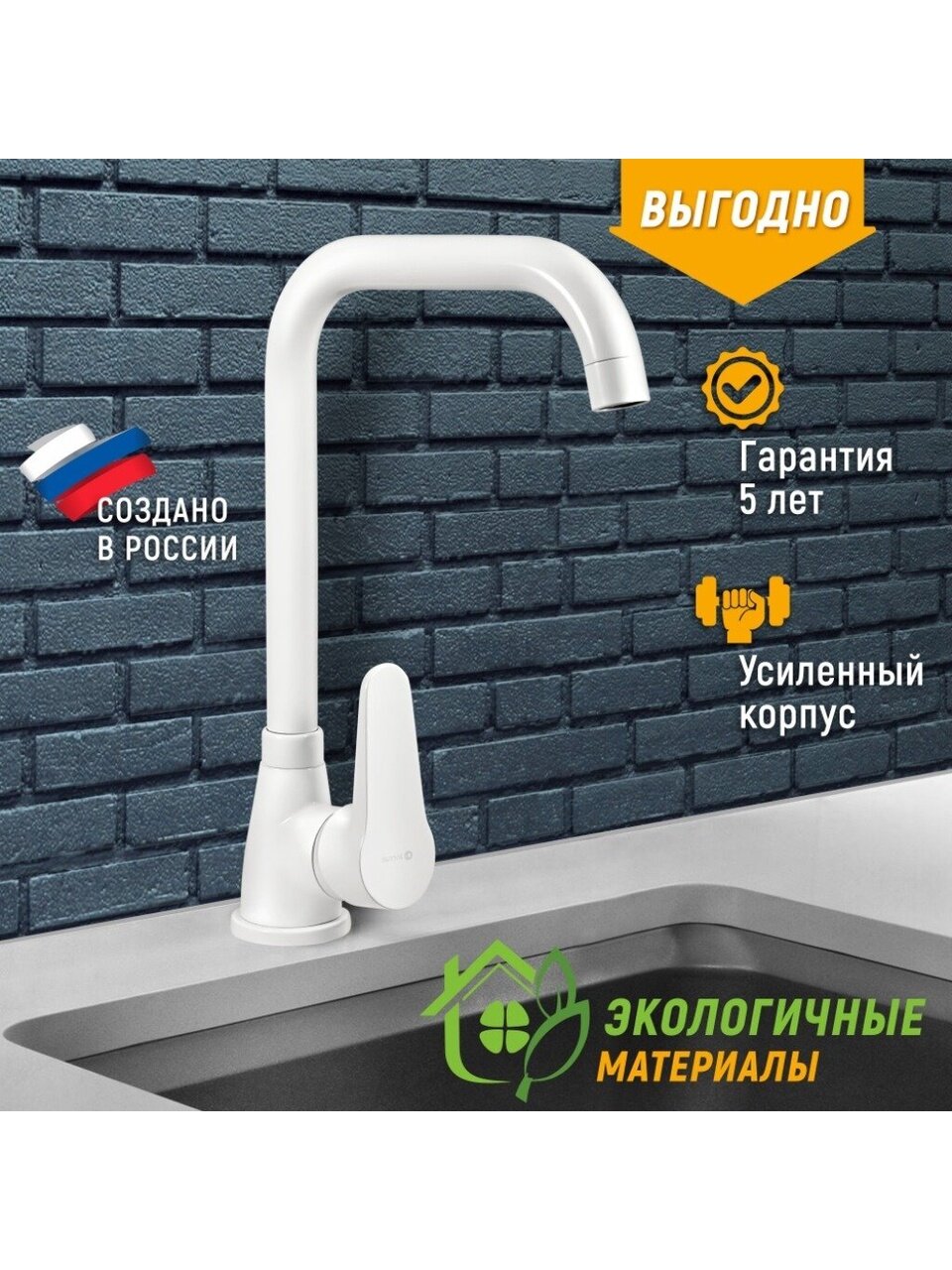 - При производстве смесителя используются только высококачественные материалы, что является гарантией долговечности.