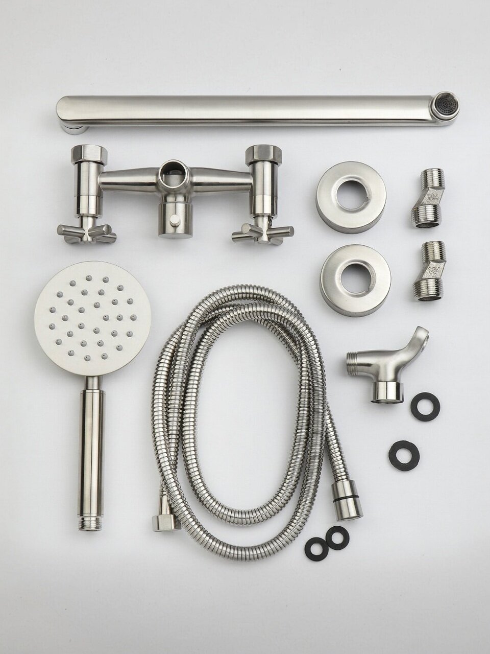 - Универсальность: подходит для квартиры, дачи или подарка благодаря гибкой подводке, душевой лейке и простому настенному монтажу