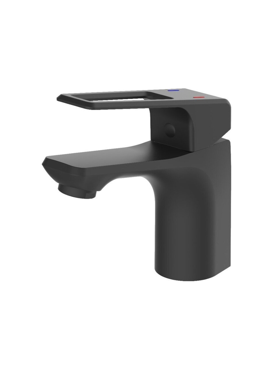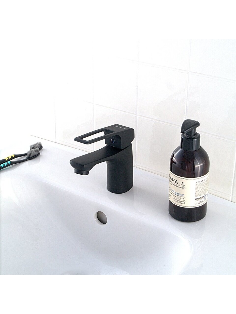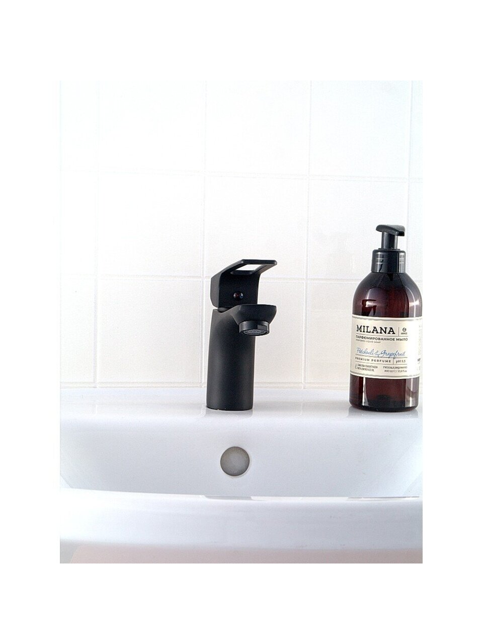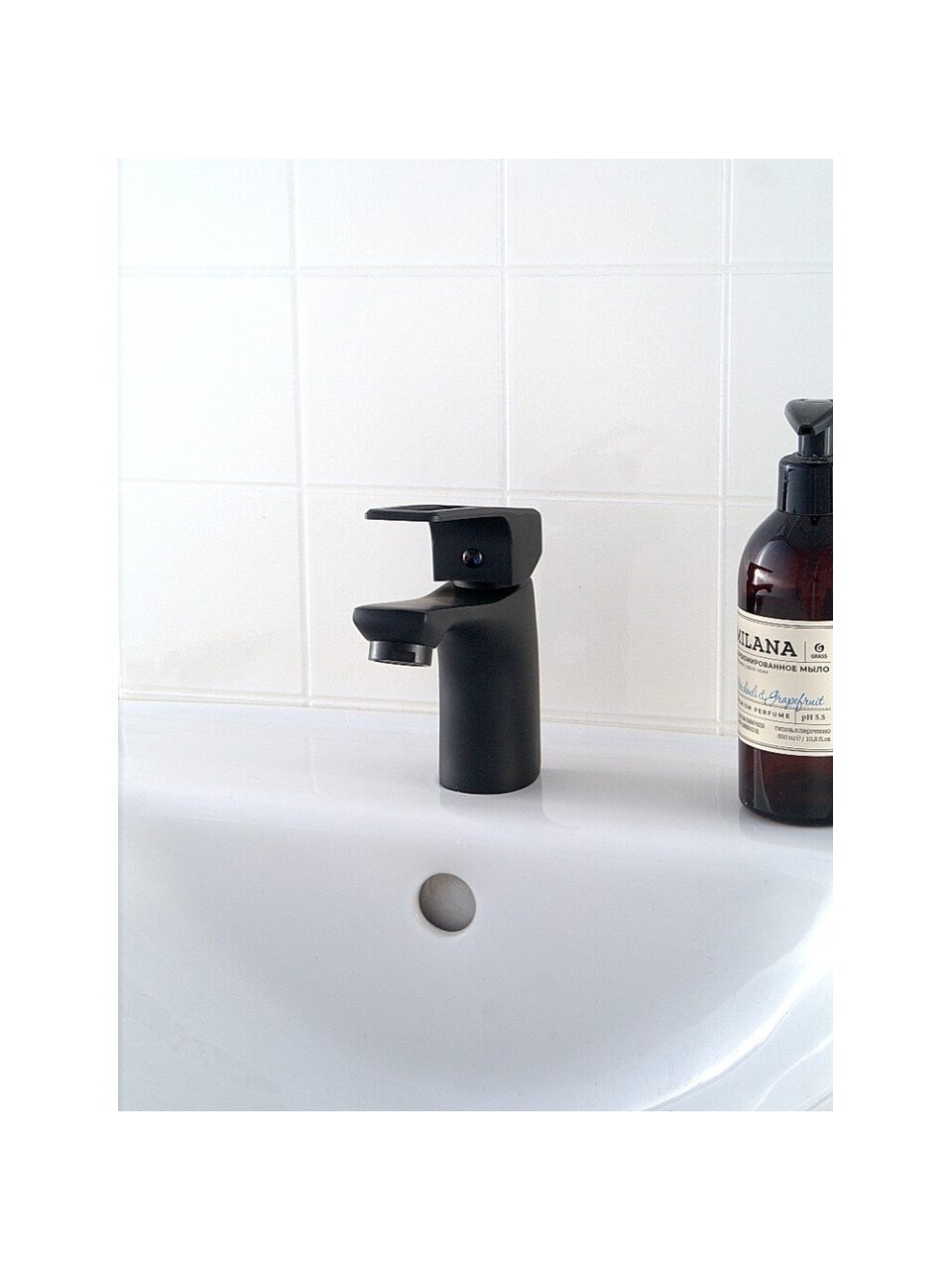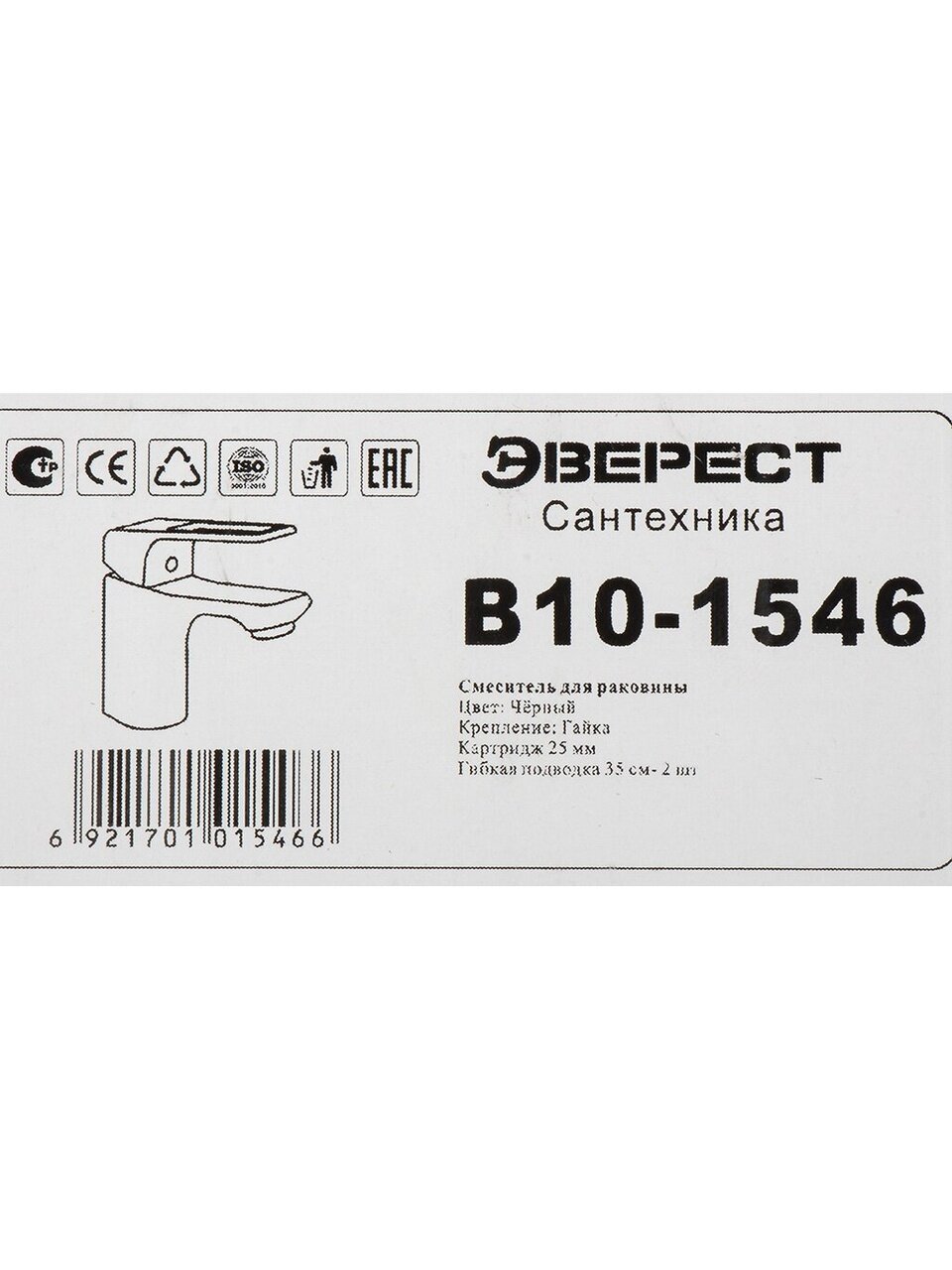 Смеситель для раковины Эверест B10-1546: компактный черный дизайн, керамический картридж, 12 месяцев гарантии — удобное решение для современных ванных комнат.