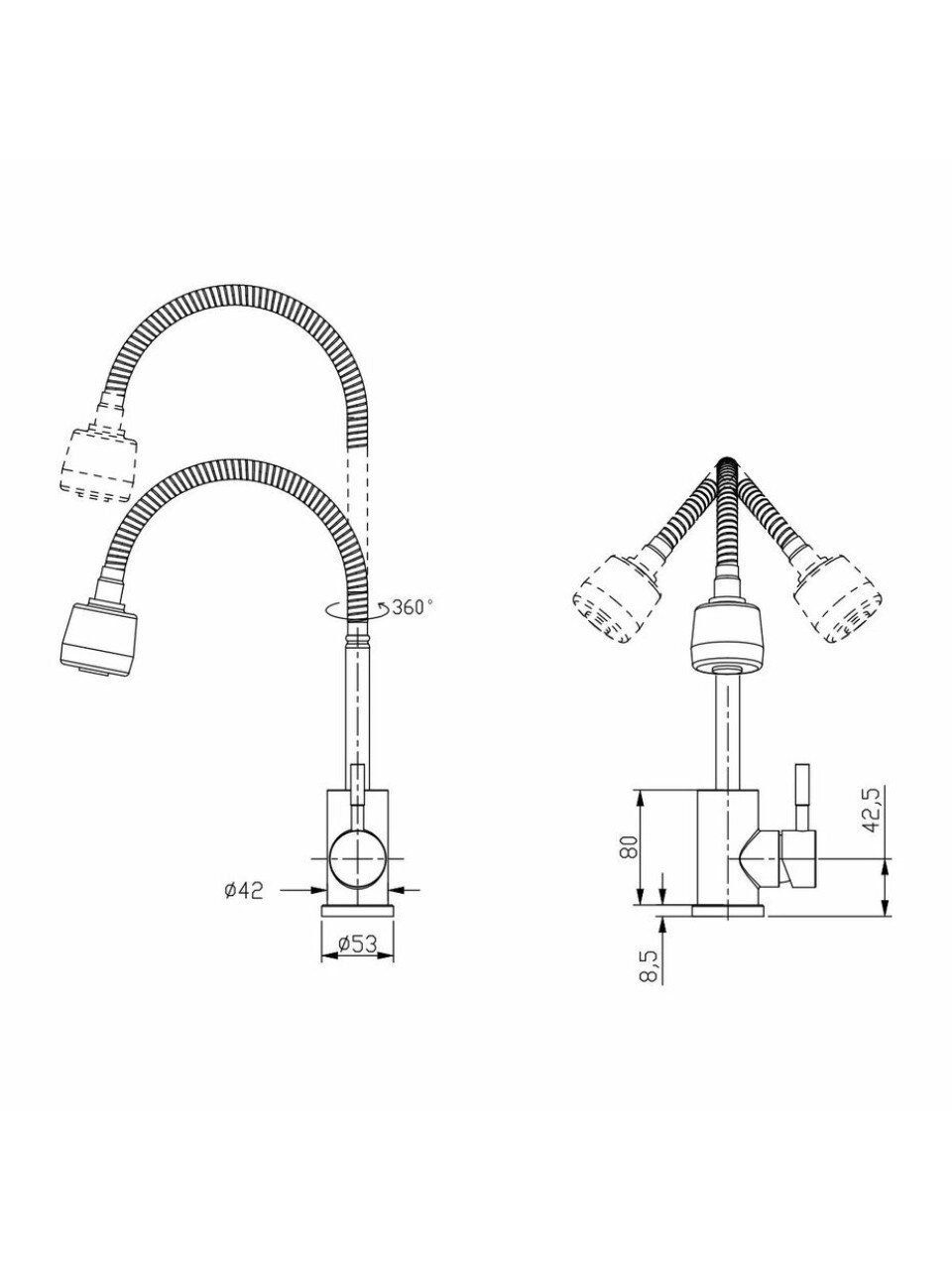 - Гибкий высокий излив — удобно мыть крупную посуду и наполнять высокие ёмкости, легко направлять поток воды.