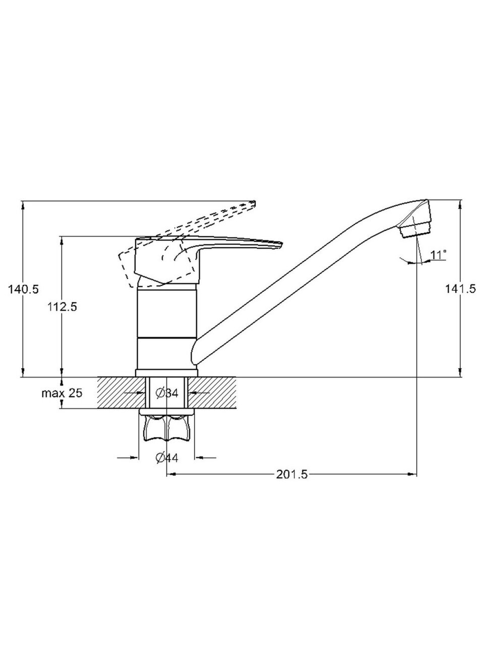 - Корпус из цинкового сплава с глянцевым хромированием — износостойкость, средний излив 20,2 см и монтаж в одно отверстие (диаметр 35 мм)
