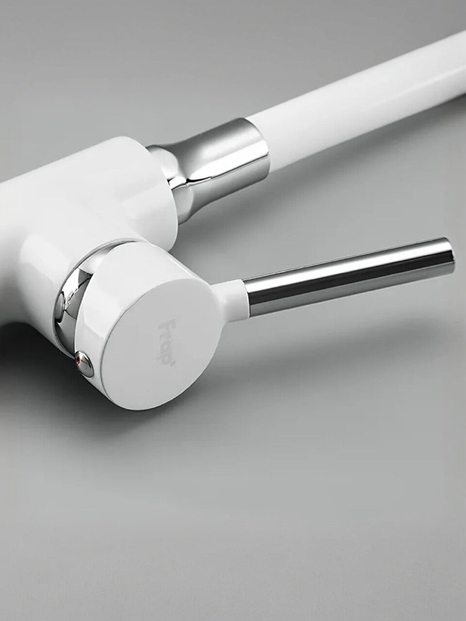 Смеситель для кухни Frap F4044-8 с гибким изливом: современное решение для комфортной мойки. Латунь, белый цвет, высота 22,3 см — удобно, стильно, долговечно.