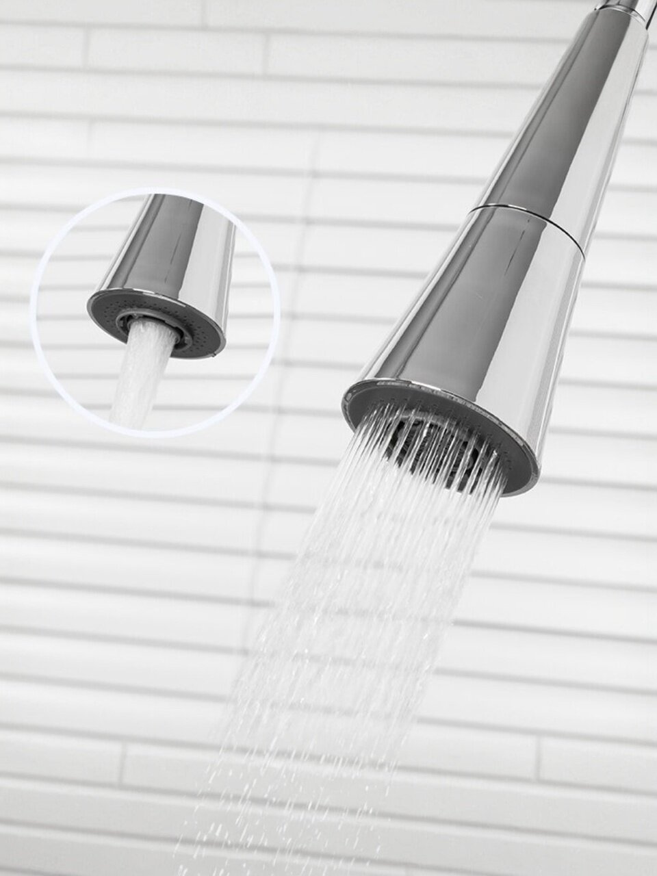 Гибкий излив позволяет легко направлять воду под разным углом, удобно наполнять высокую посуду и быстро ополаскивать раковину.