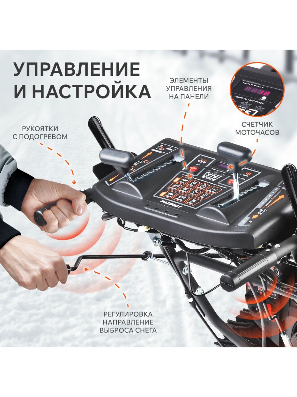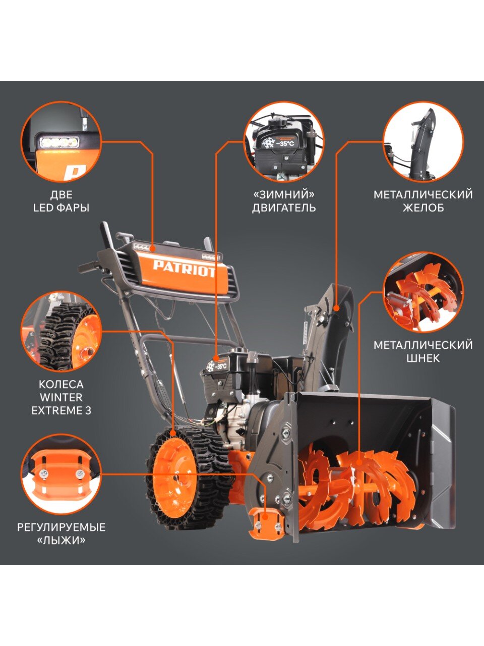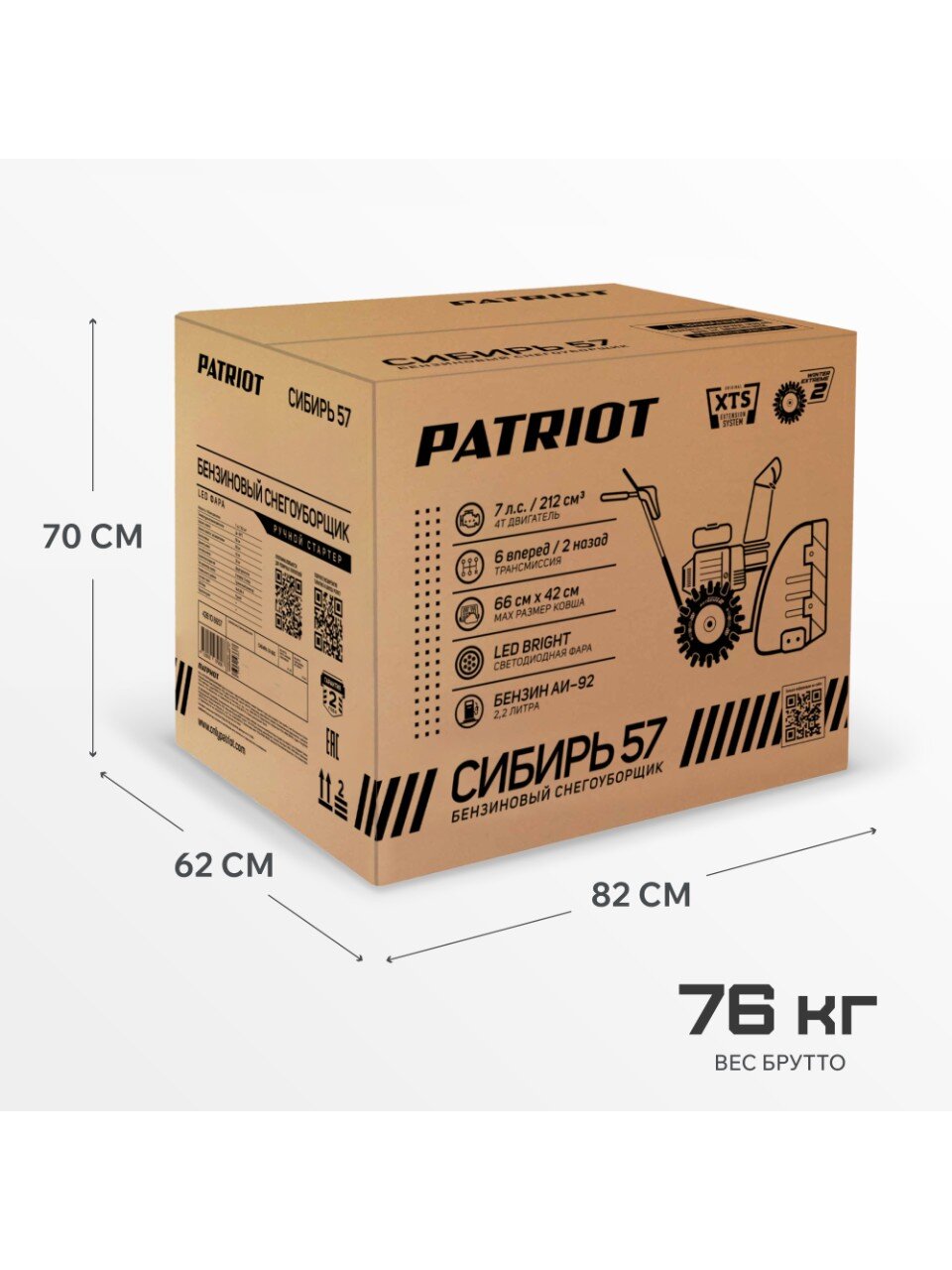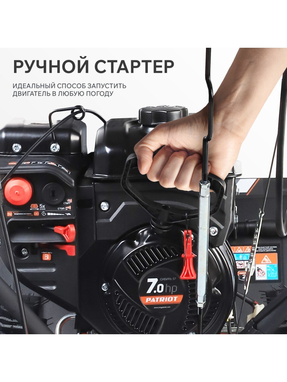 Снегоуборщик Patriot Сибирь 57 — мощный бензиновый помощник для быстрой очистки снега: 7 л.с., LED-фары, 6 скоростей, ширина захвата 56 см. Идеальное решение для дачи и частного дома.