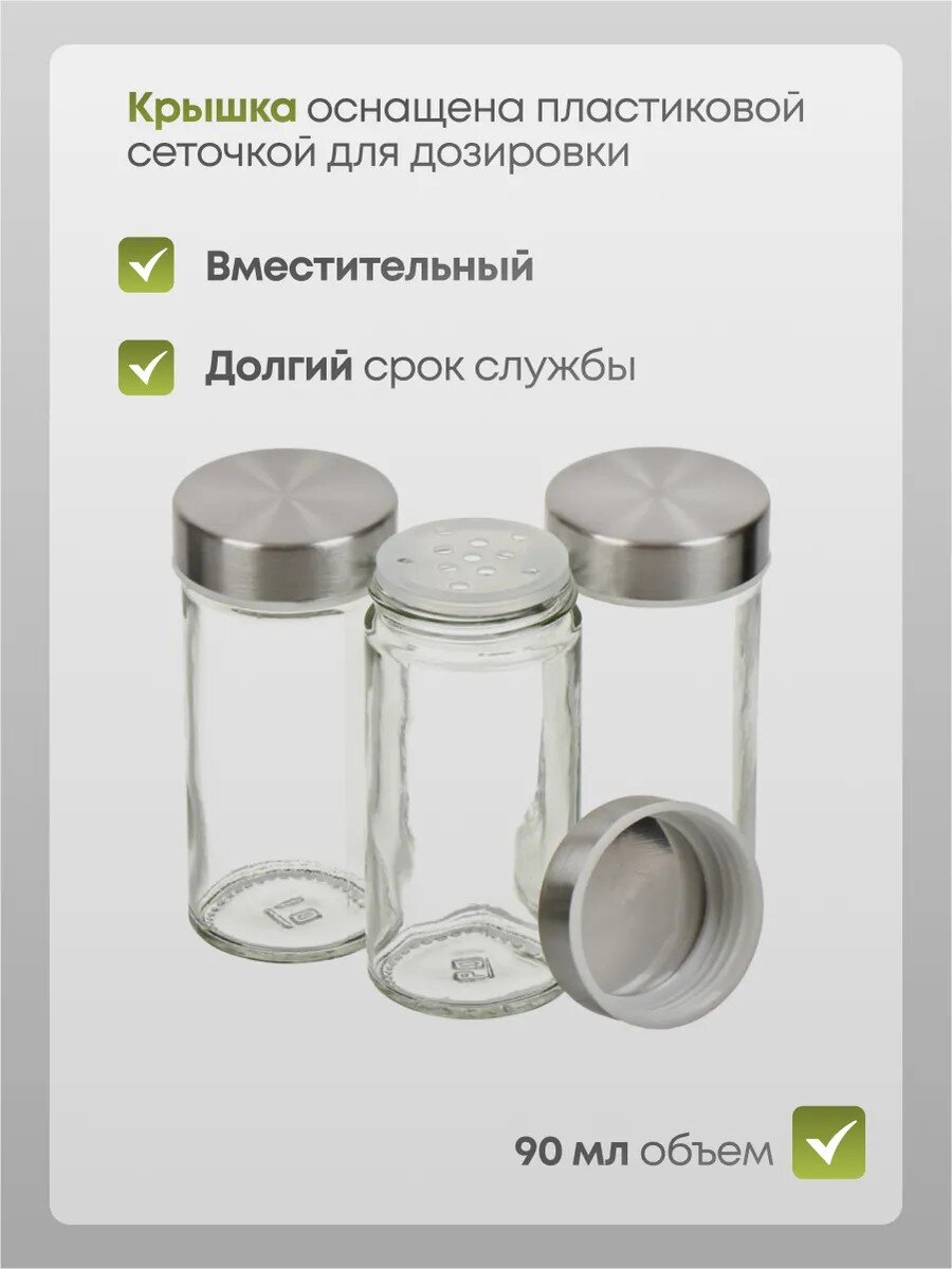 - За счет прозрачных емкостей специи хранятся наглядно.