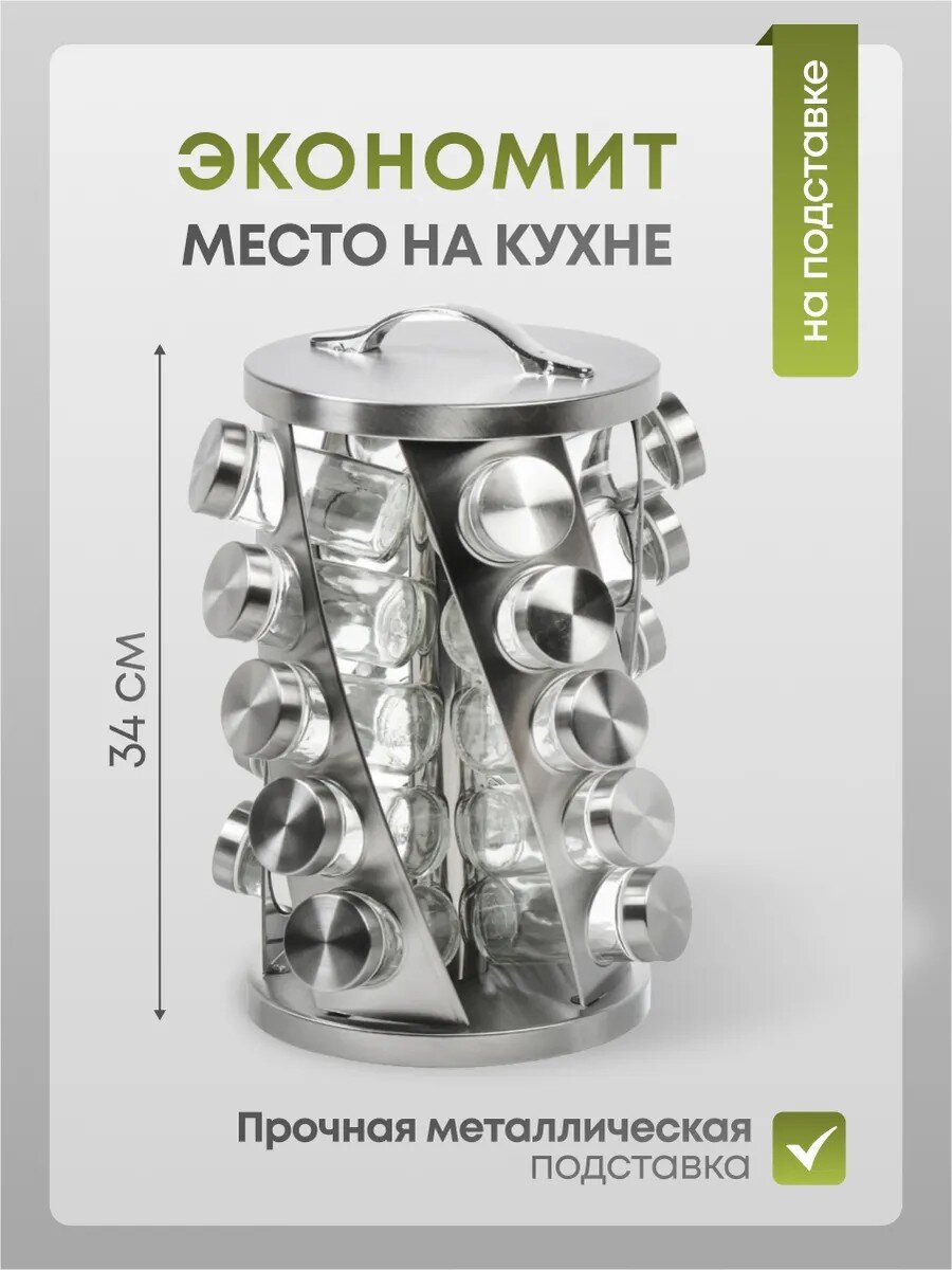 Набор для специй и приправ на круглой платформе это стильный и нужный аксессуар для вашей кухни. Баночки позволяют держать все любимые приправы в одном месте.