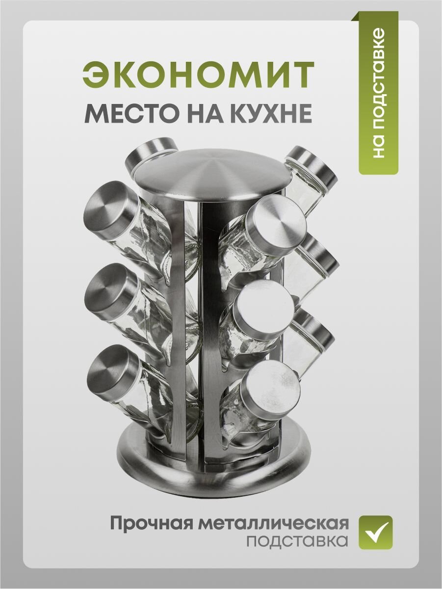 Набор для специй на подставке – это отличное решение, позволяющее удобно использовать специи и приправы во время приготовления.