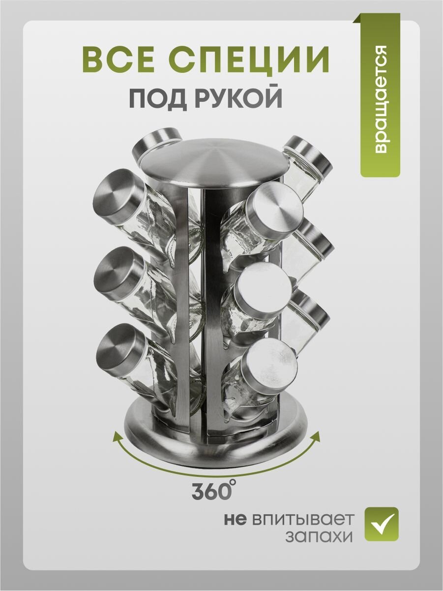 Набор для специй на вращающейся подставке станет отличным подарком для любой хозяйки!