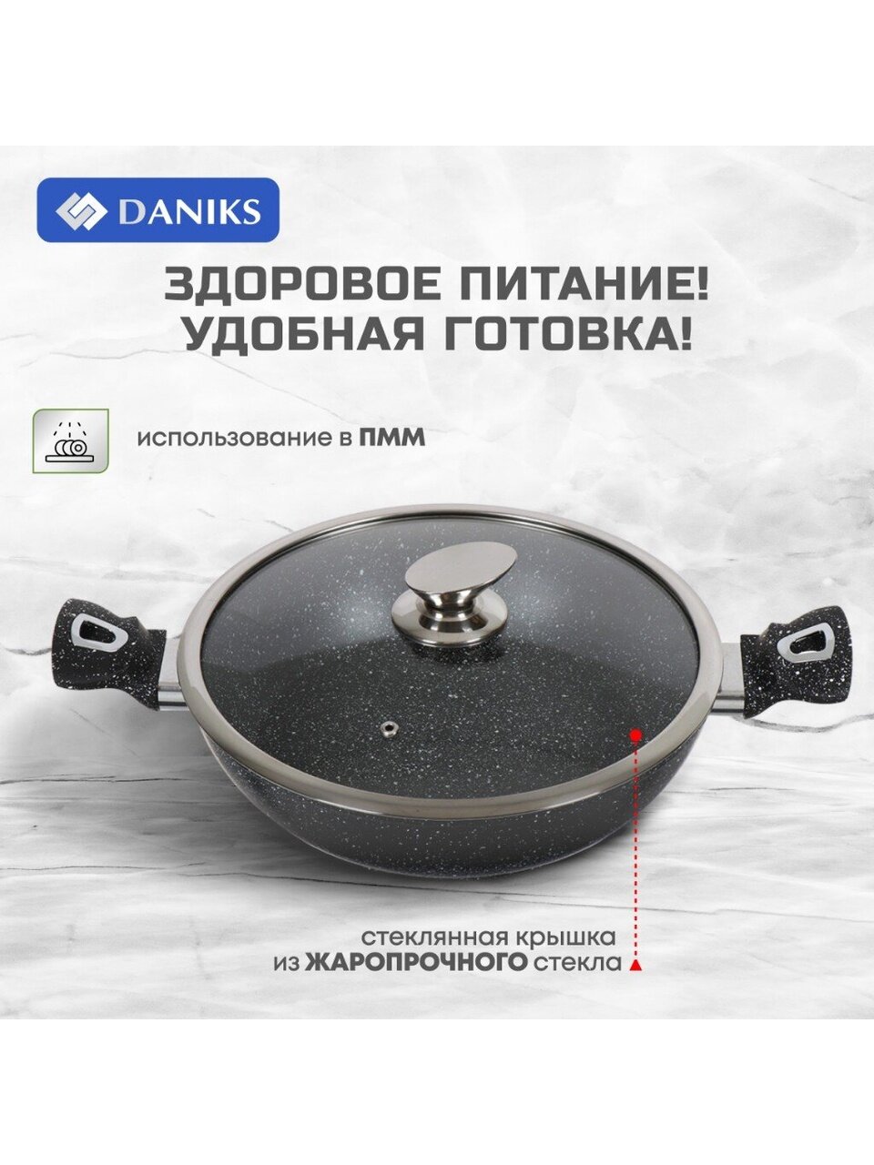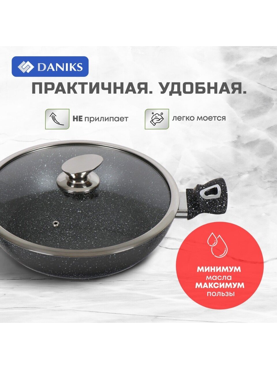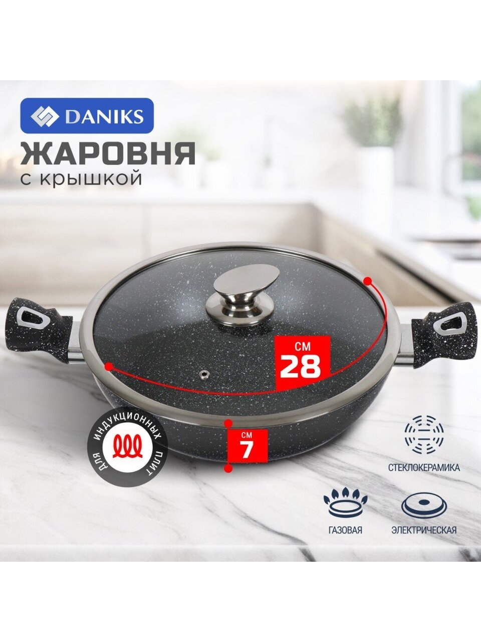 Вы можете приобрести «Жаровня алюминий, 28 см, антипригарное покрытие, Daniks, Гранит Олимп, черная, CAS-2835-BLM-IND, с крышкой, индукция» и другие товары в нашем интернет-магазине в Обнинске по низким ценам и с бесплатным самовывозом.