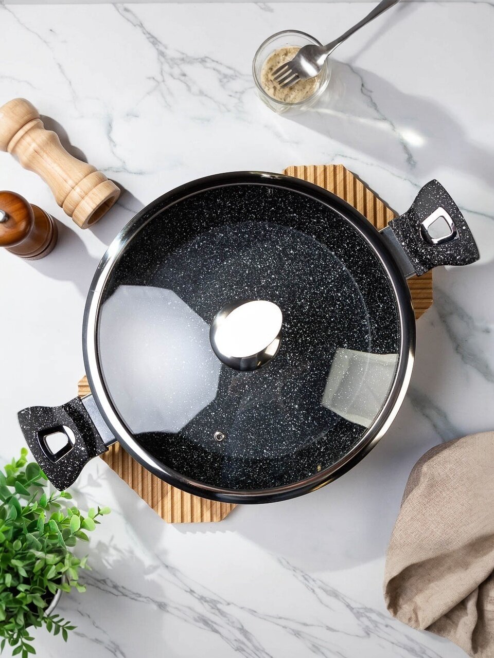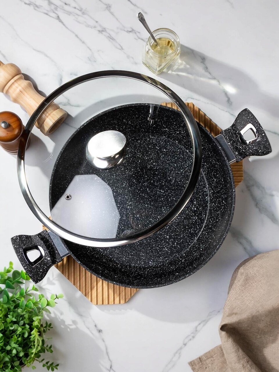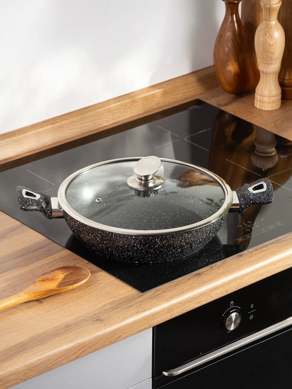 Вы можете приобрести «Жаровня алюминий, 28 см, антипригарное покрытие, Daniks, Гранит Олимп, черная, CAS-2835-BLM-IND, с крышкой, индукция» и другие товары в нашем интернет-магазине в Обнинске по низким ценам и с бесплатным самовывозом.