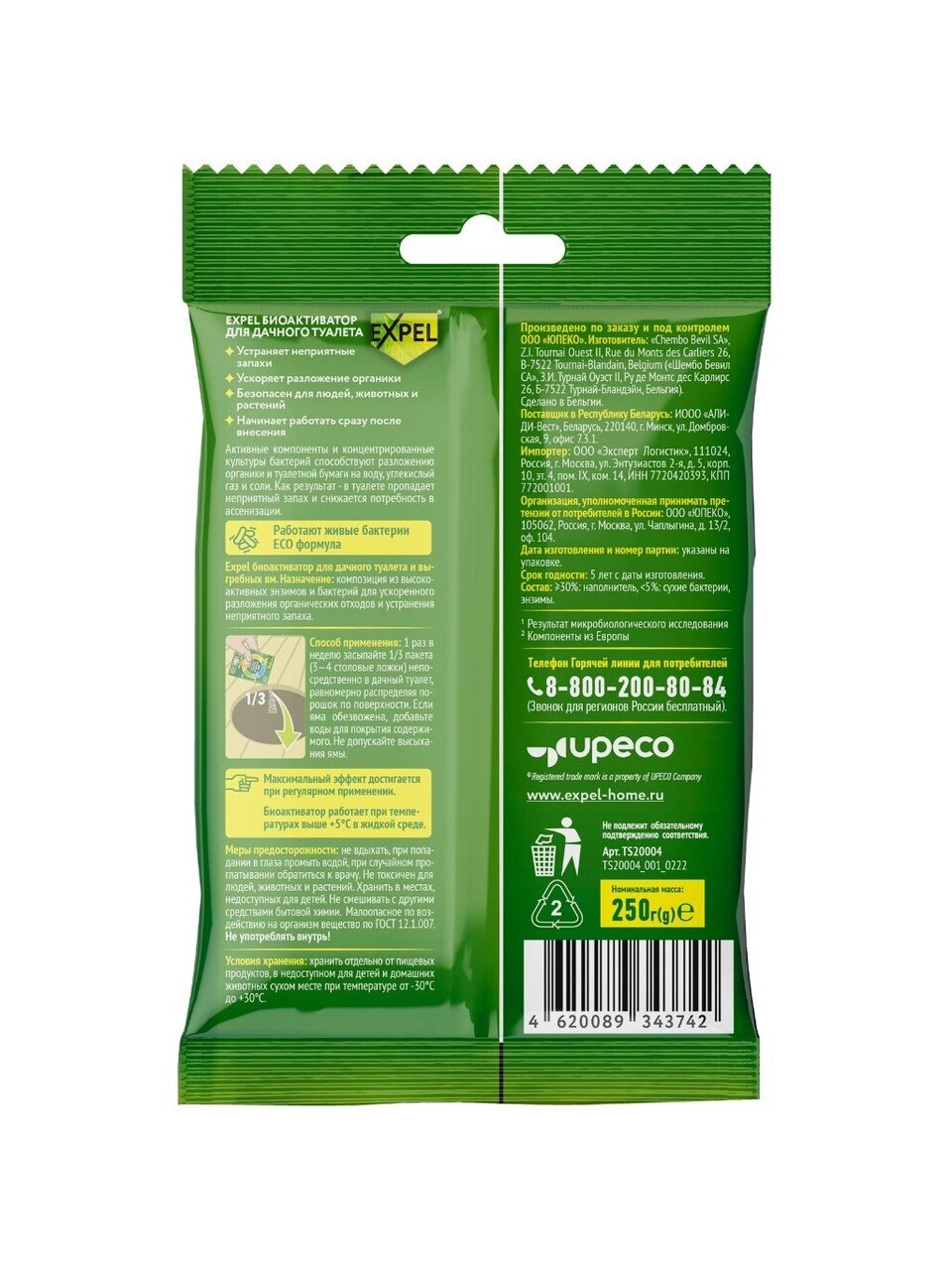 Биоактиватор для септиков, выгребных ям, дачных туалетов, Expel, 250 г, саше - фото 1 от пользователя