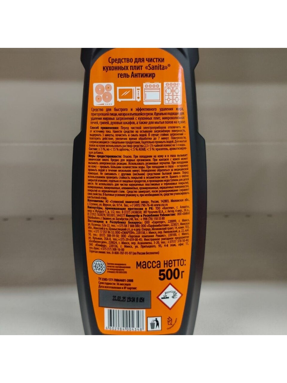 Вы можете приобрести «Чистящее средство для кухни, Sanita, Антижир, гель, 500 мл» и другие товары в нашем интернет-магазине в Коврове по низким ценам и с бесплатным самовывозом.