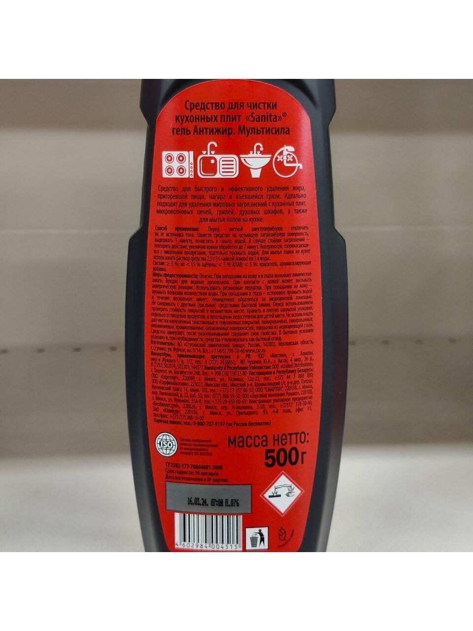 Вы можете приобрести «Чистящее средство для кухни, Sanita, Антижир Мультисила, гель, 500 мл» и другие товары в нашем интернет-магазине в Ельце по низким ценам и с бесплатным самовывозом.