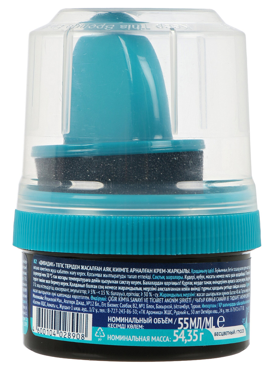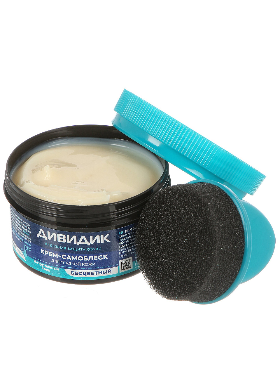 Крем для обуви Дивидик 55 мл с губкой: быстрая защита, блеск без разводов, универсальный уход для любой обуви — экономия времени и денег.