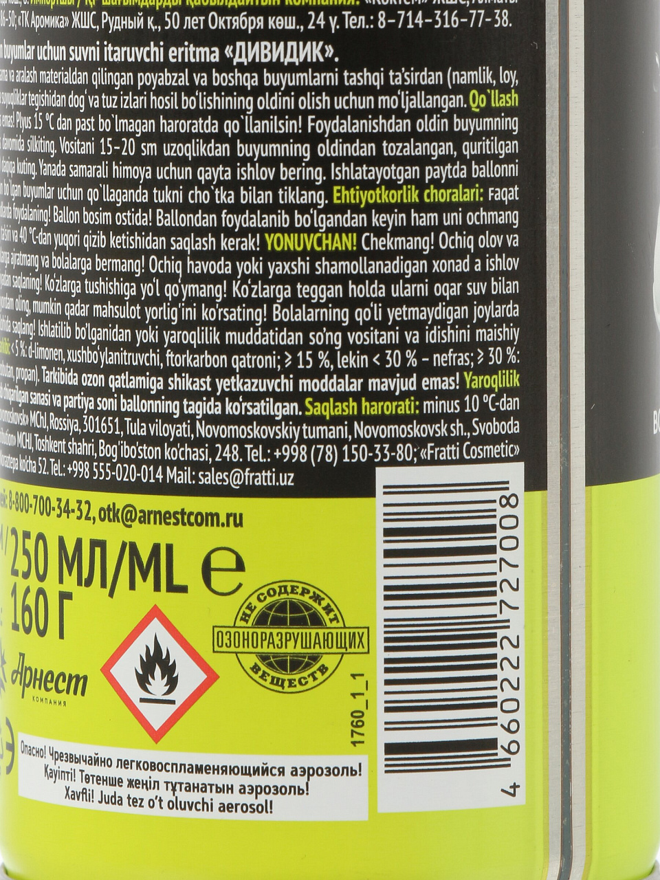 Вы можете приобрести «Спрей-пропитка Дивидик, Водоотталкивающая, для кожаных и текстильных материалов, велюра, 250 мл, бесцветный, 4660222727008» и другие товары в нашем интернет-магазине в Борисоглебске по низким ценам и с бесплатным самовывозом.