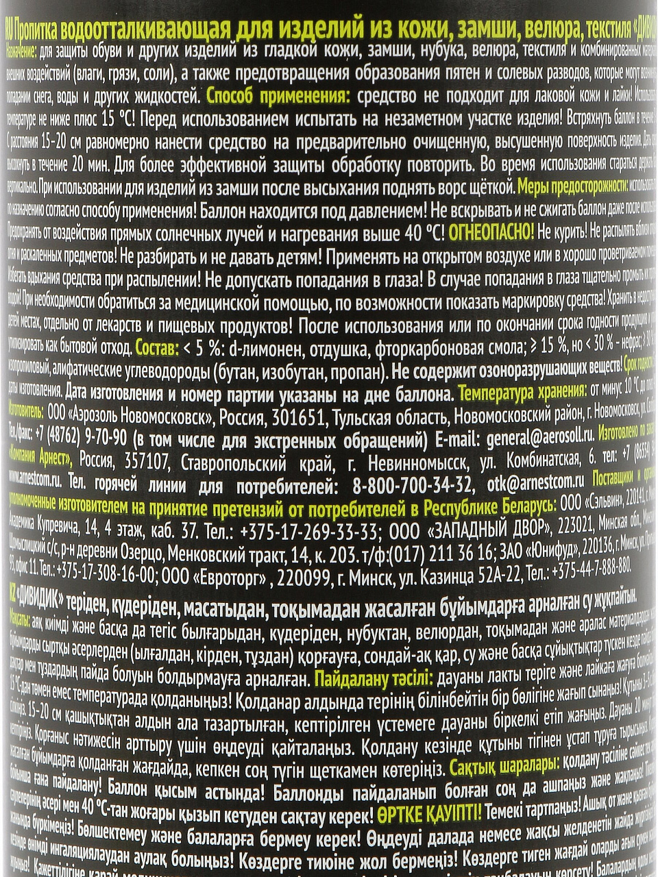 Спрей-пропитка Дивидик — это выбор тех, кто ищет эффективную водоотталкивающую пропитку для кожаных и текстильных изделий. Благодаря бесцветной формуле средство не оставляет следов, не меняет оттенок и структуру материалов. Защищает обувь, сумки, куртки и аксессуары от влаги, снега и уличной грязи, продлевая срок службы вещей в любых погодных условиях. Часто спрашивают: «Подходит ли для велюра или nubuck?» — да, спрей безопасен для деликатных поверхностей, не вызывает деформации и потускнения.