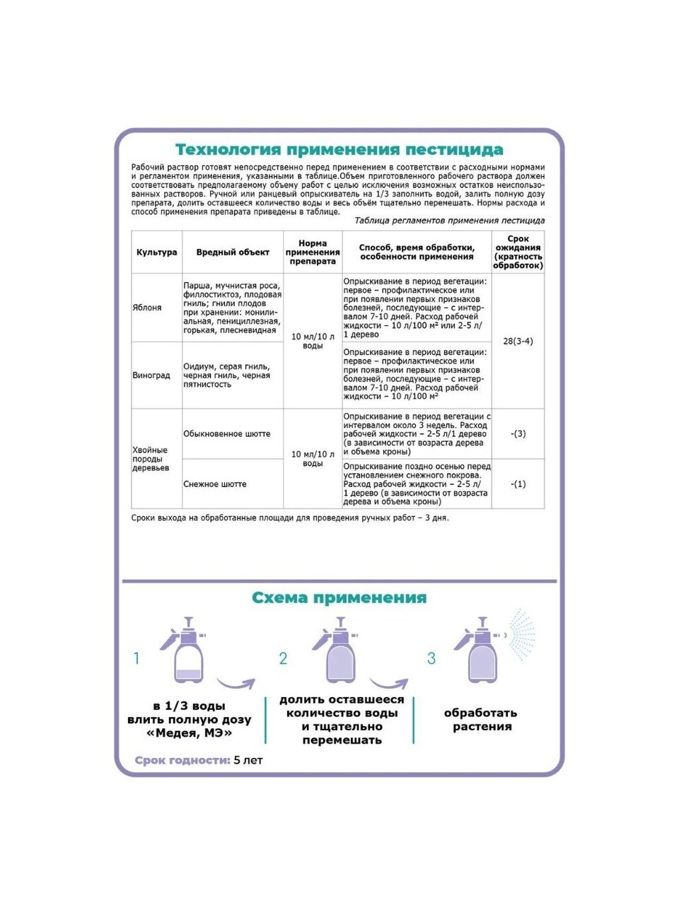 Фунгицид Медея — надежное решение для защиты хвойных растений от различных заболеваний. Этот продукт от бренда Щелково Агрохим специально разработан для борьбы с паршой, мучнистой росой, плодовой гнилью, плесенью, оидиумом и серой гнилью. Жидкая форма выпуска обеспечивает легкость в применении, а объем 10 мл делает его удобным для использования в саду.