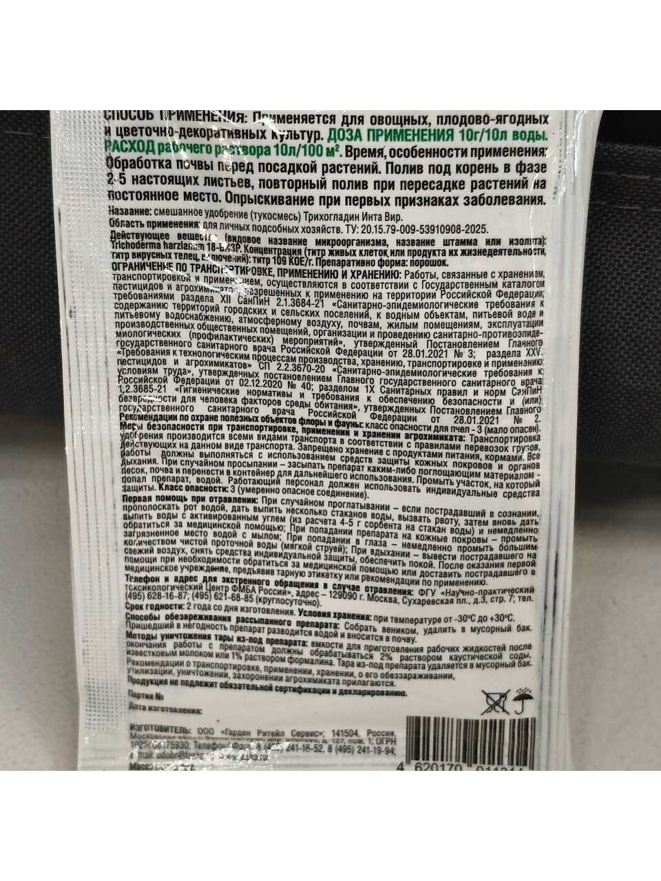 Откройте для себя надежную защиту растений с фунгицидом Трихогладин, 10 г, Инта Вир. Этот продукт создан для эффективной борьбы с грибковыми заболеваниями, обеспечивая здоровый рост и развитие ваших растений. Идеальное решение для садоводов, стремящихся к максимальной урожайности и здоровью своего сада.