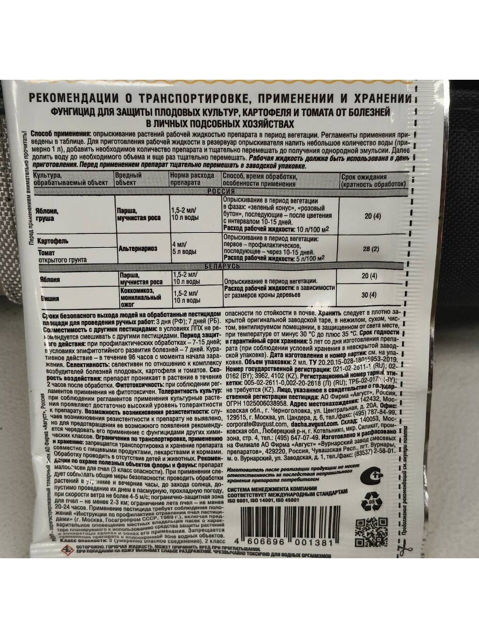- Быстро проникает в ткани растений и не смывается дождем уже через 2 часа после опрыскивания.