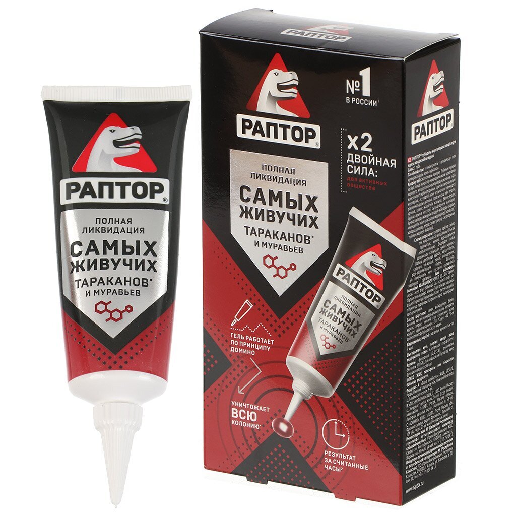 Гель от тараканов и муравьев Раптор - это профессионально уничтожение тараканов и муравьев. Эффект действия геля основан на том, что насекомое, съедая гель или контактируя с ним, становится носителем отравляющего вещества. Активное вещество действует постепенно. Таким образом, насекомое успевает вернуться в популяцию, где погибает само и заражает еще нескольких своих собратьев. Уникальная консистенция приманки позволяет ей дольше удерживать влагу и, соответственно, дольше оставаться привлекательной для насекомых. Для более активного привлечения насекомых используется натуральный экстракт абрикоса.