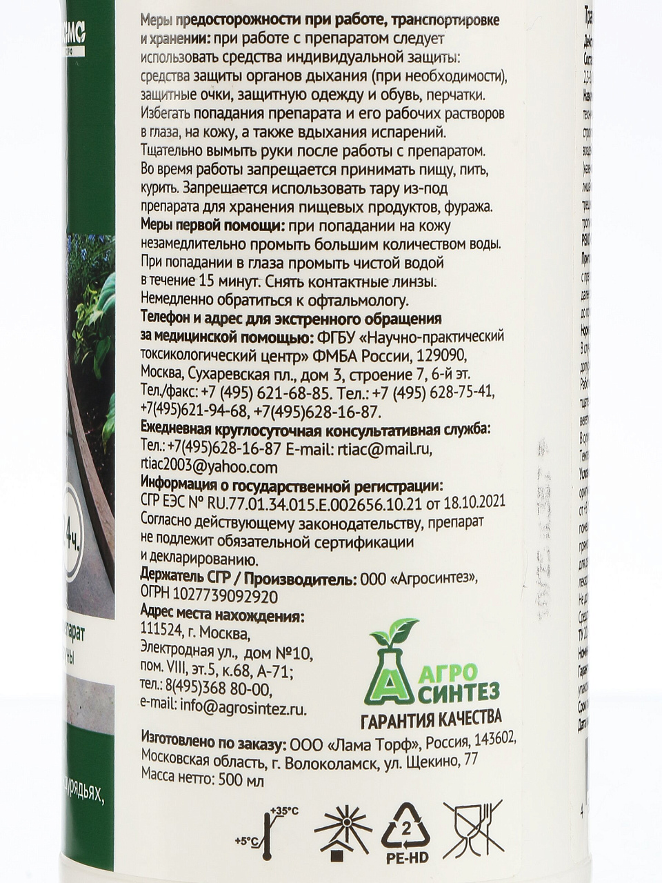 - Удобный формат 500 мл — хватает для обработки до 200 м², подходит для точечного и сплошного опрыскивания.
