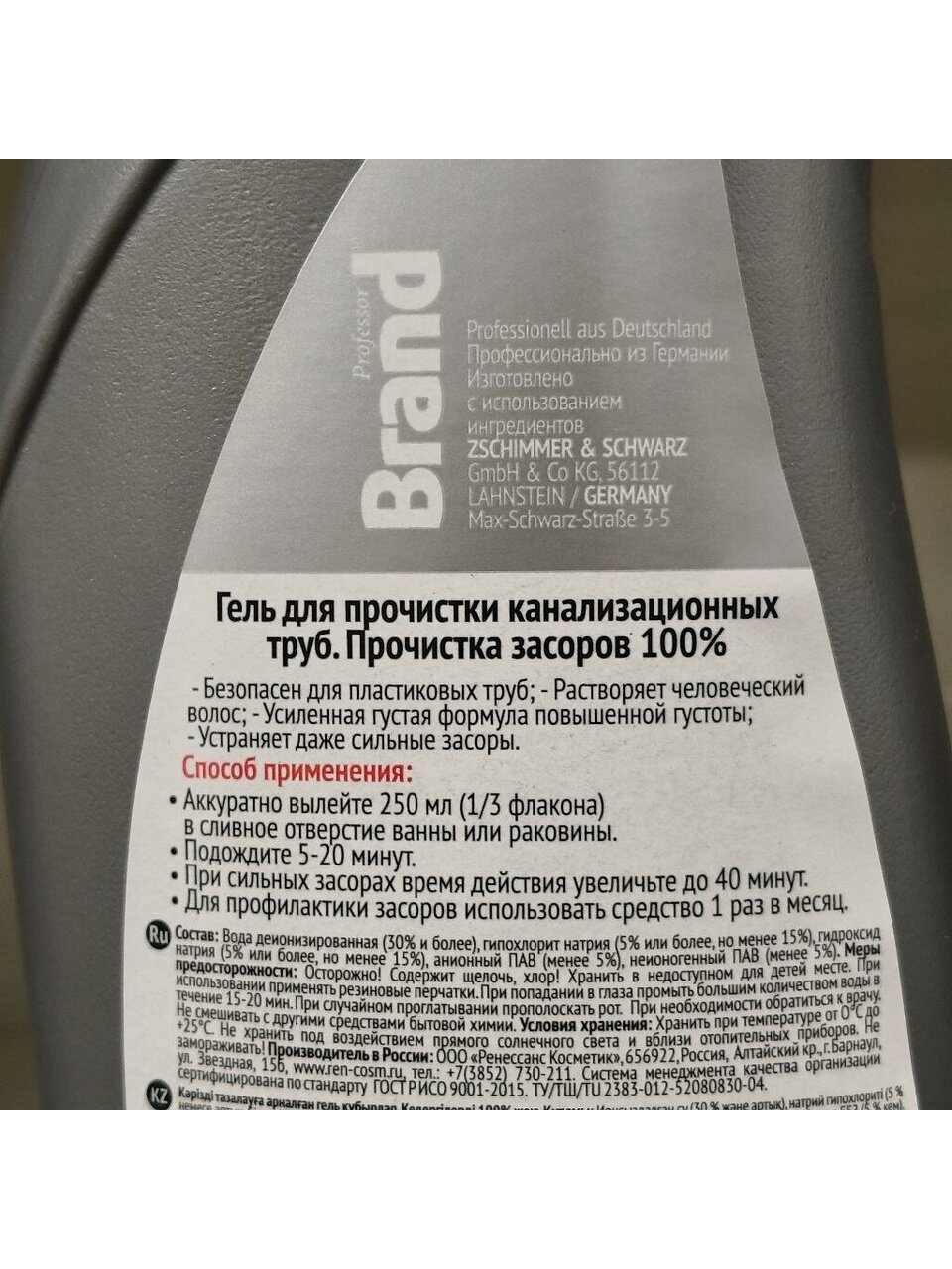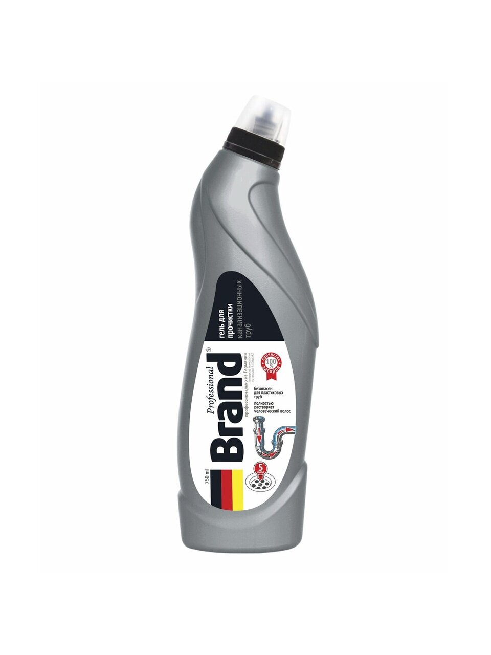 Гелеобразная формула профессионального средства для прочистки канализационных труб BRAND и высокое содержание активных веществ быстро проникает до места загрязнения и интенсивно его удаляет. Средство эффективно устраняет засоры в сливах раковин, ванн, унитазов от органических загрязнений, пищевых остатков, жира, волос, бумаги и т.д.